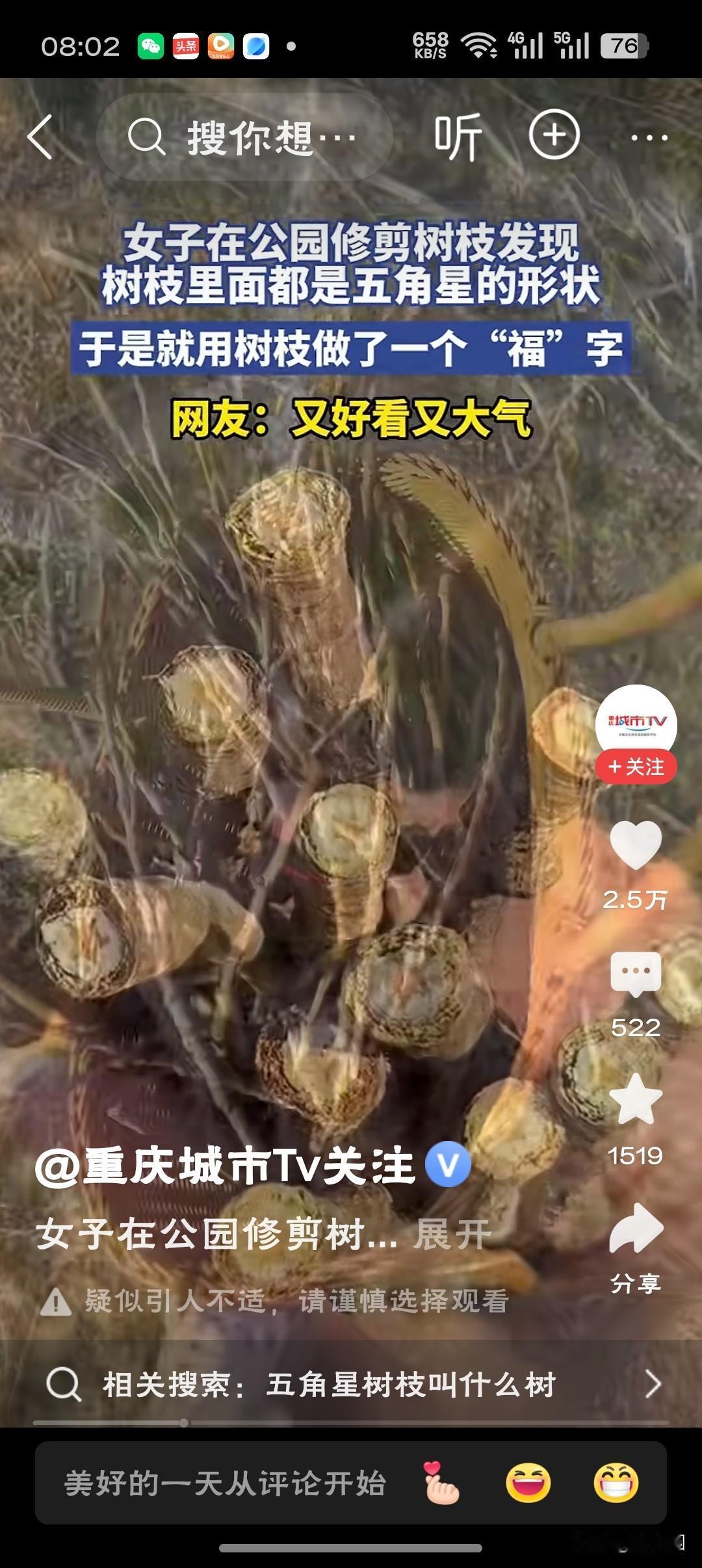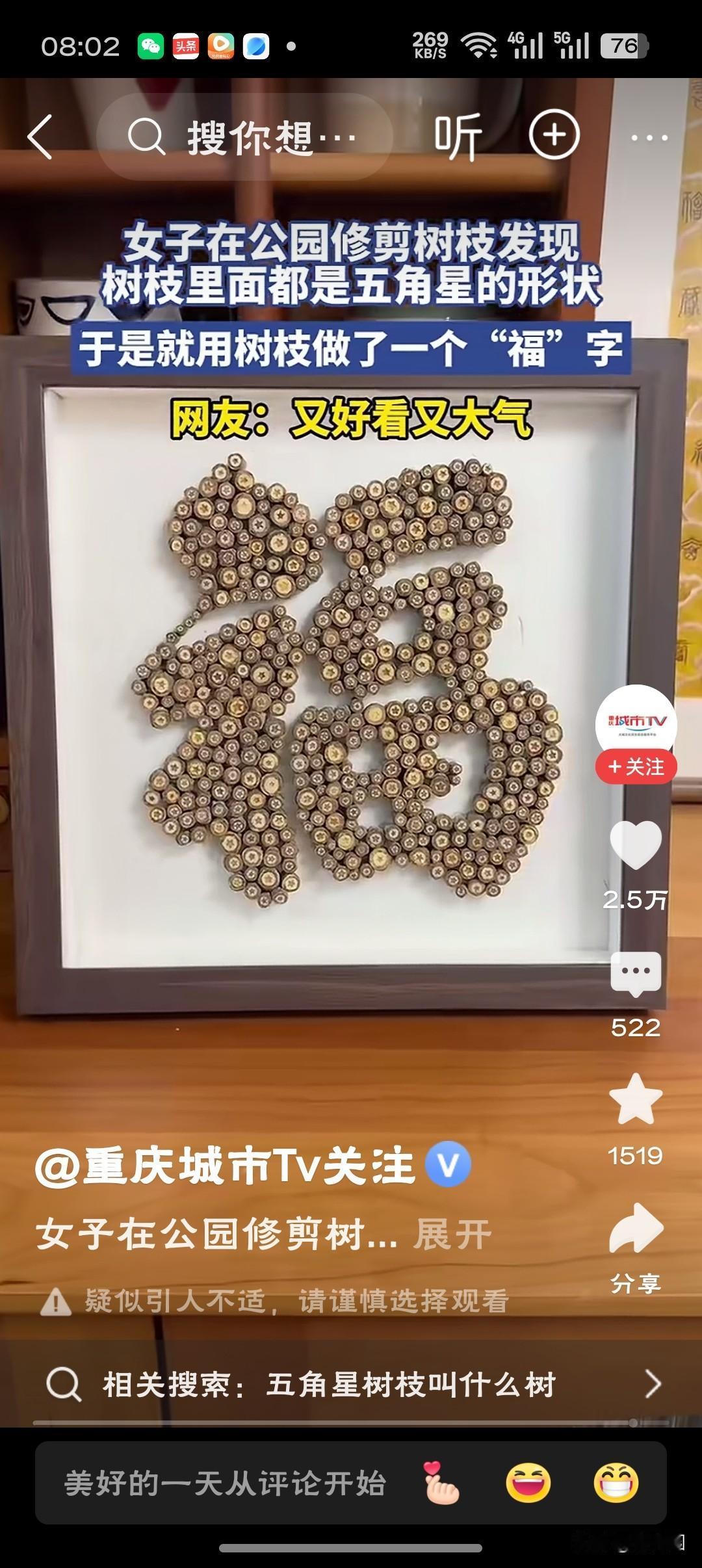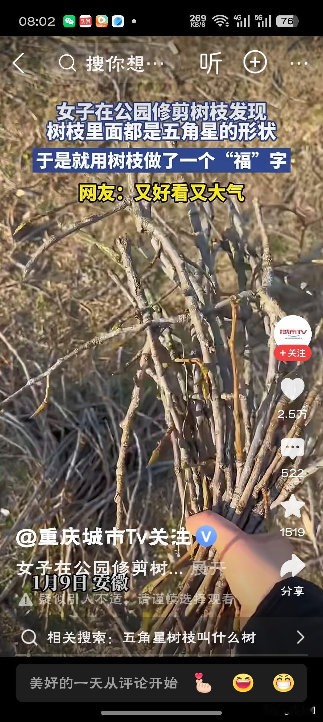 女子发现树枝断面都是五角星的形状自然界的鬼斧神工从不让人失望!这五角星断面是树木写给大地的“情书”,藏着艺术与科学的完美密码。