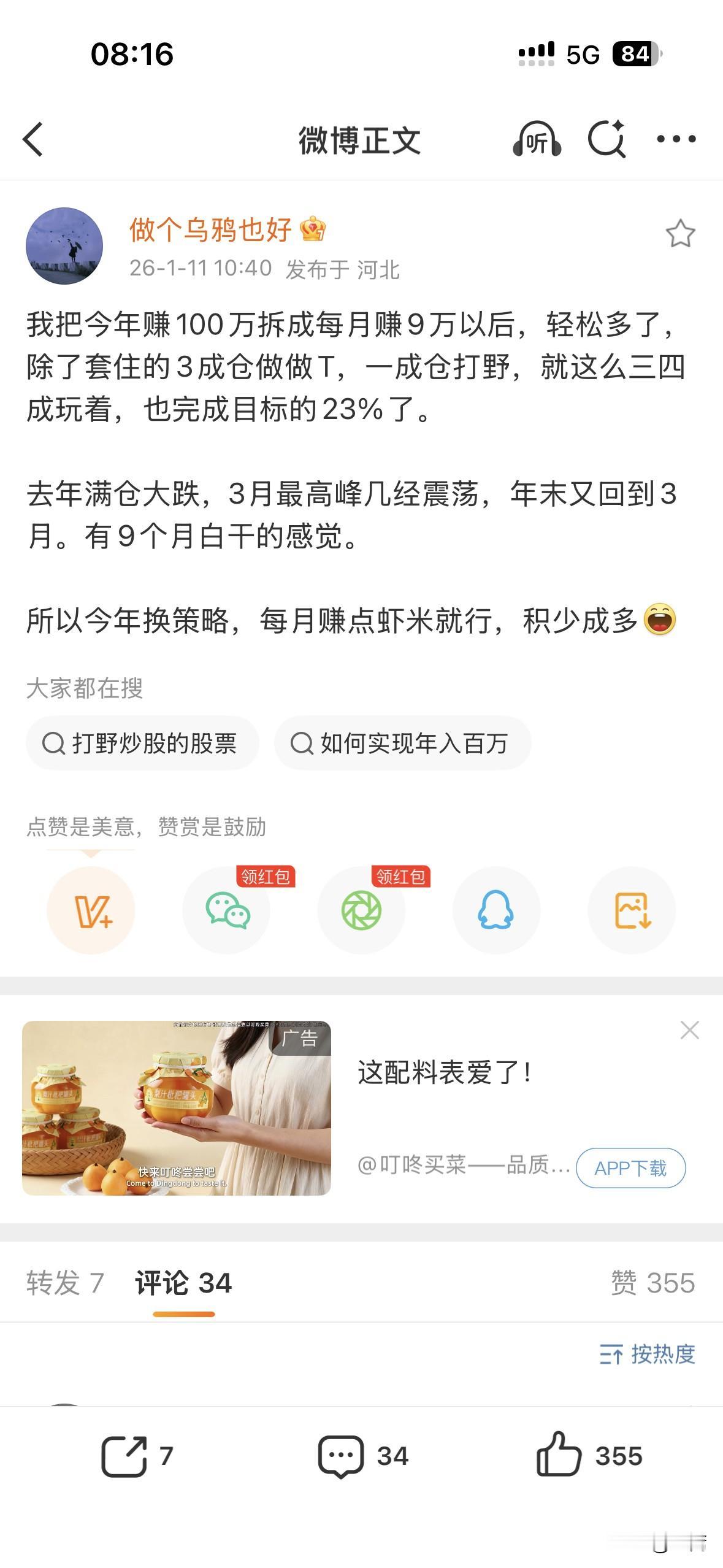 不骂男人的木子美,文字里飙出一股老股民的烟嗓画面感。 2026年股票市场目标100万,每个月9万。 八位数的账户,做了分层分成和配置,风险点死守,盈利随意。 很木子美。