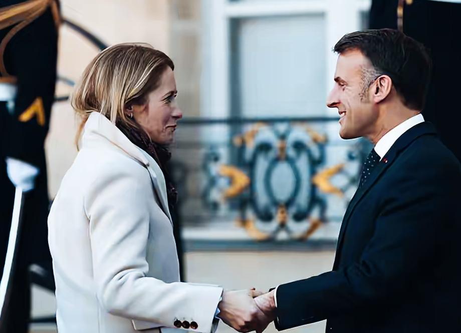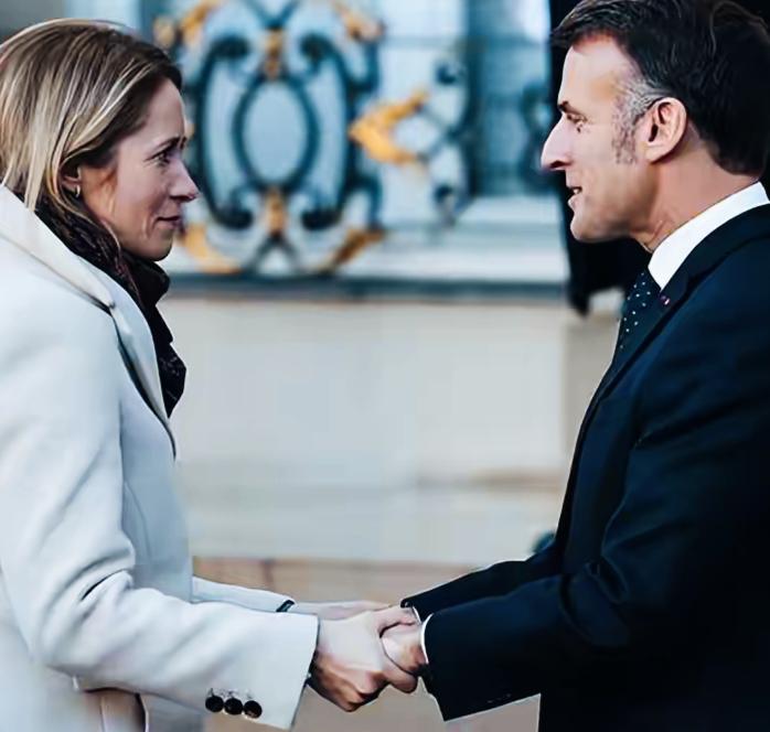 欧盟外长卡拉斯双手握着马克龙的手,看向马克龙的眼神是什么意思呀? 卡拉斯和马克龙互相对视的眼神中,传递了什么意思呢? 马克龙微笑的表情透露了何种心情呢? 卡拉斯和马克龙两人此刻内心在想什么呢?