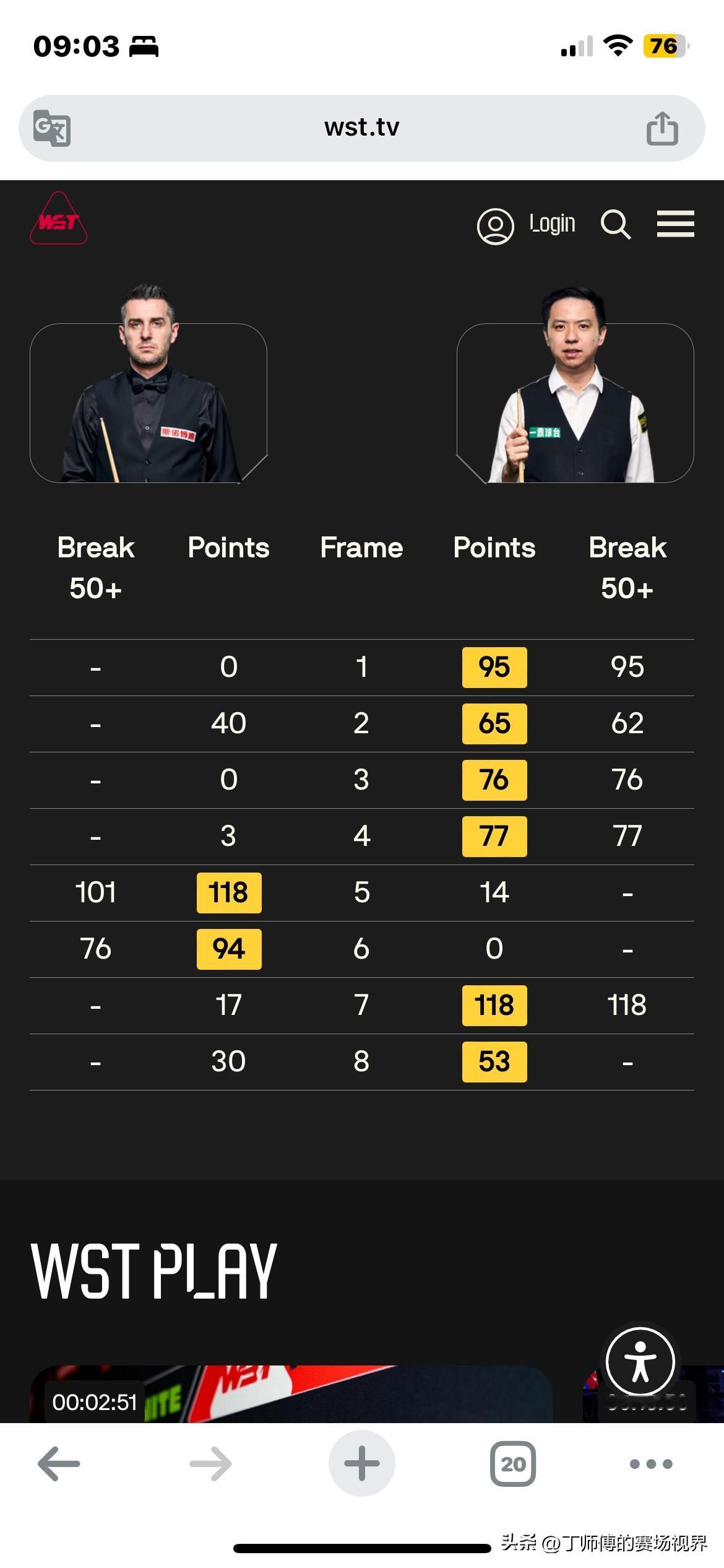 肖国栋击败塞尔比赛后采访:“知道抽奖结果后,我就清楚这将会是很艰难的对决,马克刚刚才赢得两个重磅赛事冠军,也许没有人认为我能击败他,我只是和自己说一定要有信心,去享受比赛过程。前面四局我给马克制作了很多麻烦,没有太多失误,但所有人都知道他会反扑。第七局是全场比赛的关键,他打丢蓝球后,我抓住机会单杆破百,如果比分变成4-3,那最后可能完全不一样。”“吴宜泽刚来英国的时候我们天天一起训练,大家都是好朋友,我们两人已经锁定一个半决赛名额,这对中国球手而言真的太棒了。” 肖国栋在大师赛首轮以6-2大胜3届冠军塞尔比,将在1/4决赛和吴宜泽上演中国德比。