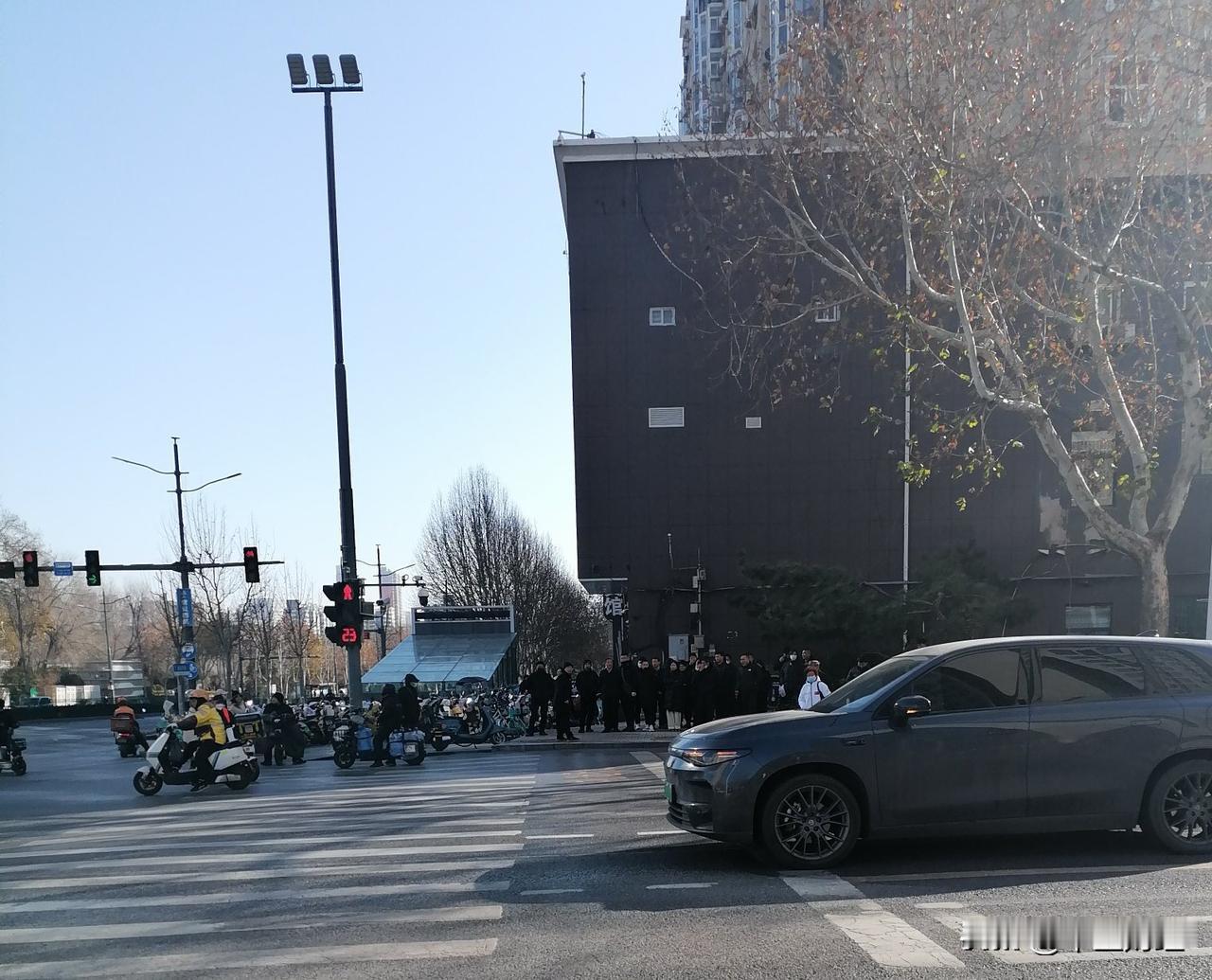 马跑边,站着一群穿黑衣服的工作人员。据说这些都是交通网络管理员,正有一位领导给大家布置任务,每个人负责一片!好家伙,人可不少!想到一个问题,未来如果AI通用的话,还需要那么多网格化人员嘛?