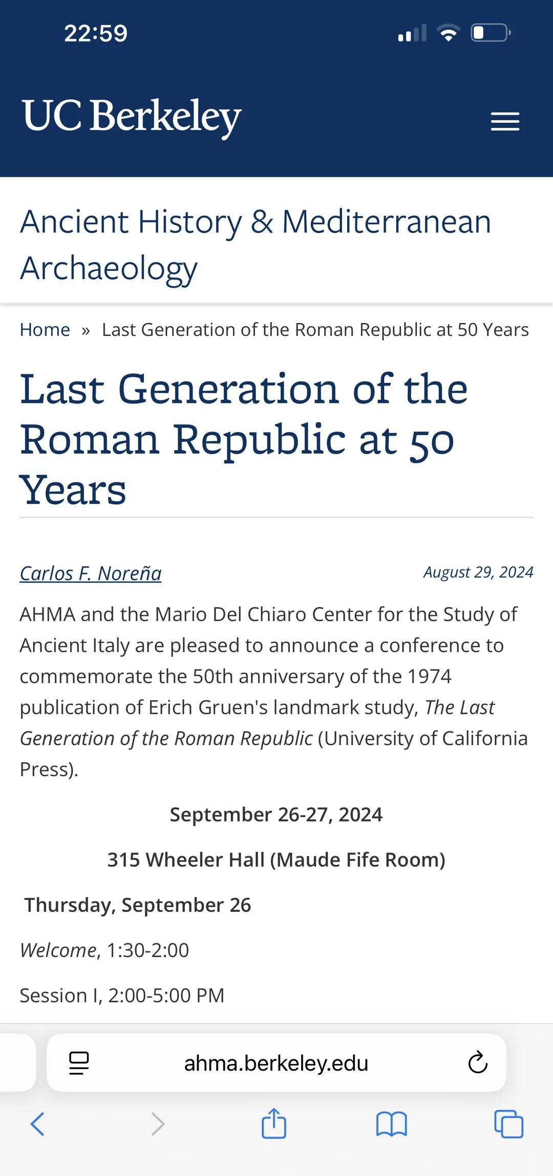 Erich Gruen: 美利坚共和国的最后一代 在牛津大学的罗马史大家Ronald Syme之后,我认为英语世界最重要的古代史大家是伯克利退休20年但始终活跃的Erich Gruen。在美国古典学届,大家一直传闻的是最让Gruen自豪的不是他写的10多本书,而是他学生写的可以堆满一书架的书。美国古典学会以他的名字命名的古典学奖项相当于给他立生祠。我认为他的重要性不在于具体研究,而在于他的研究和时代精神的接轨。Syme研究主要是因为他的罗马帝国研究是为大英帝国衰落书写挽歌,Gruen重要是因为他的研究是冷战时期美利坚帝国的自我投射(无论是他的《罗马共和国的最后一代》还是《希腊化世界与罗马的到来》)。也就是说,Gruen对Syme的继承在于在罗马历史书写上美利坚帝国对大英帝国的继承。在这一点上,我师祖Peter Brown就比不了。由于我是古典学会Gruen奖第二位获得者,有幸能和他保持联系,这次旧金山开古典学年会也见到了他(他精神大不如三年前上次见面),简单汇报了现在研究进展,特别是我关于晚期罗马哑剧舞者和Christianity的竞争,他说这个问题绝对值得做。这一句话的历史书写意义希望以后随着我的研究进展能慢慢体现。就他的《罗马共和国的最后一代》,两年前举办了50年研讨会,最后一个题目是现在是不是美利坚共和国最后一代,Gruen本人本身就是美利坚共和国的最后一代。古典学 古罗马 罗马史 罗马帝国 罗马帝国史 罗马共和国 罗马革命 世界上古史