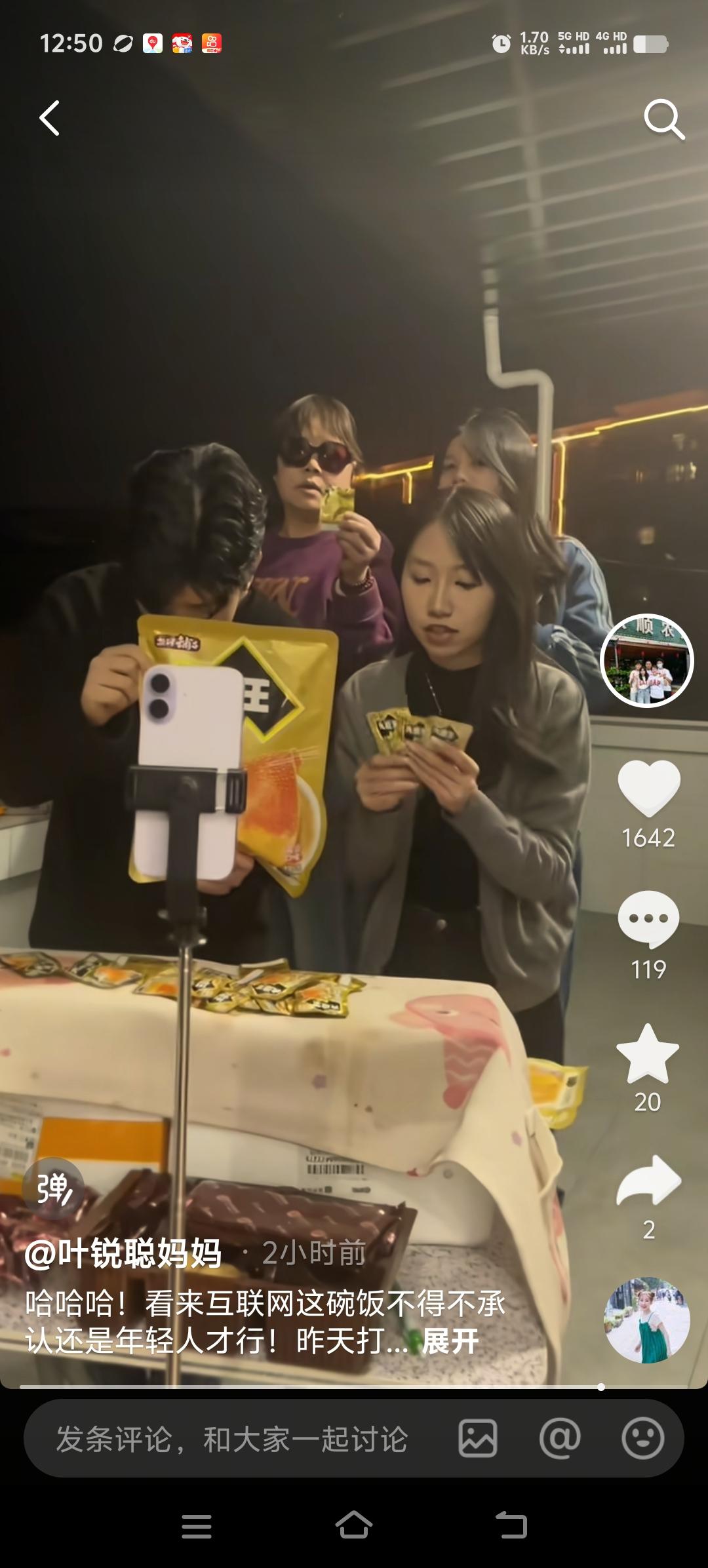 叶锐聪妈妈表示看起来互联网这碗饭还是年轻人有这个实力,昨天叶锐聪妈妈打酱油都被嫌弃,而叶锐聪的姐姐和未来的姐夫在镜头前一点紧张感都没有,谈笑风生,落落大方。从另外一个视角看直播,一家人紧紧挨在一起,靠近镜头的样子挺可爱的。