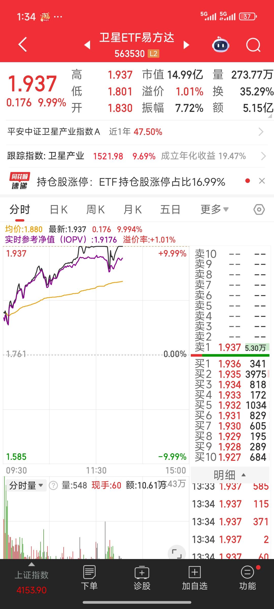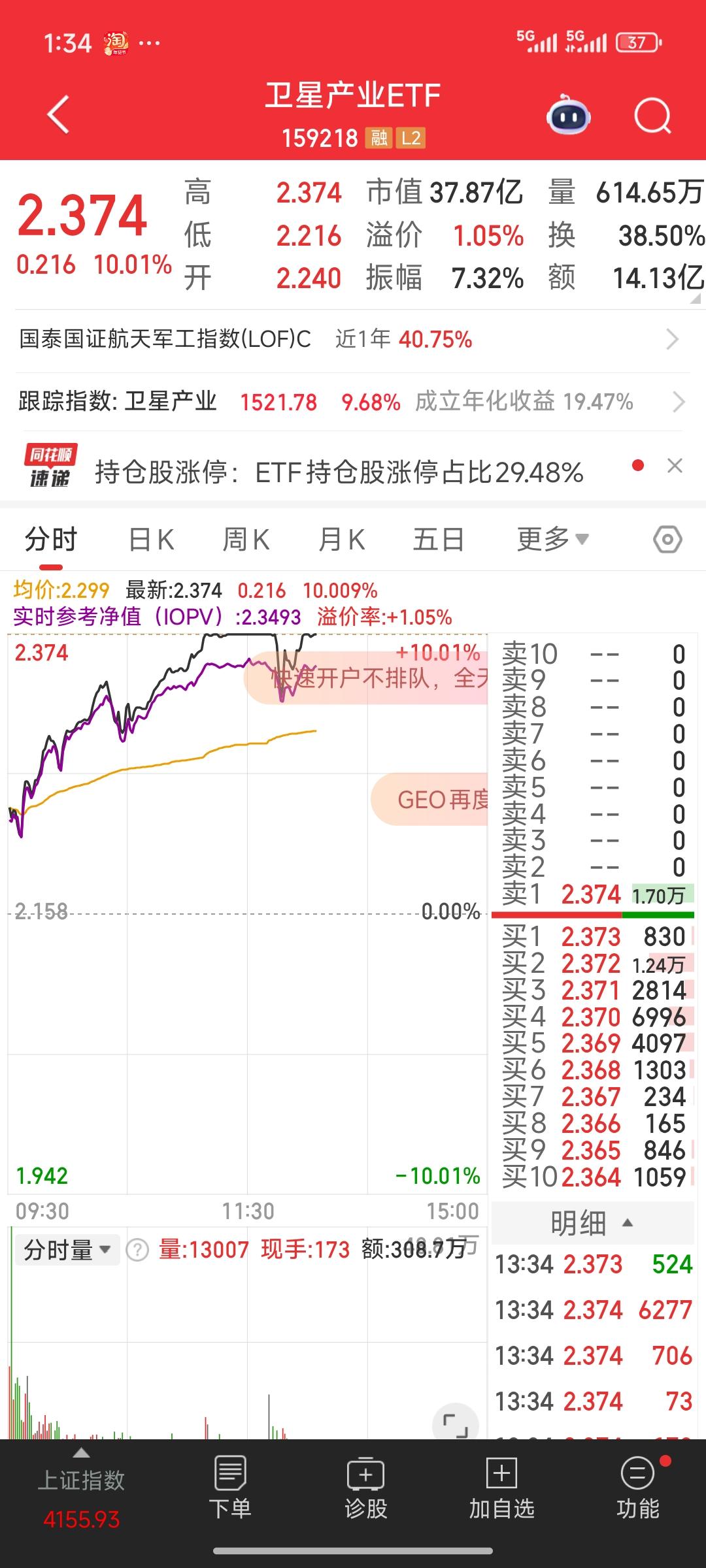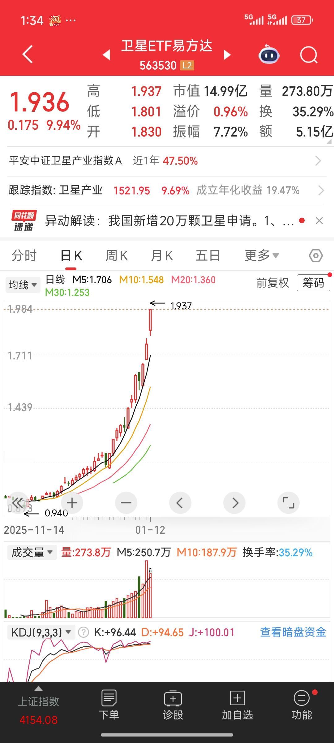 疯了,彻底疯了!与商业航天、航空航天相关的几只 ETF,场内 ETF 全线涨停。从 ETF 的走势来看,近期连续三根大阳线,完全处于加速赶顶、主升浪的进程中。这或许也意味着调整即将开启,我认为明后天大概率会有剧烈震荡。 商业航空航天实在太火了,正所谓“买在无人问津时,卖在人声鼎沸时”,我觉得现在是可以考虑卖出的时候了。起码应该分批卖出一部分,对于持有商业航天高位股票的投资者而言,卖出一部分是理智之选。 ETF市场分析 股票基金etf 股票ETF ETF etf板块 etf股票 etf 科创板etf 商业航天