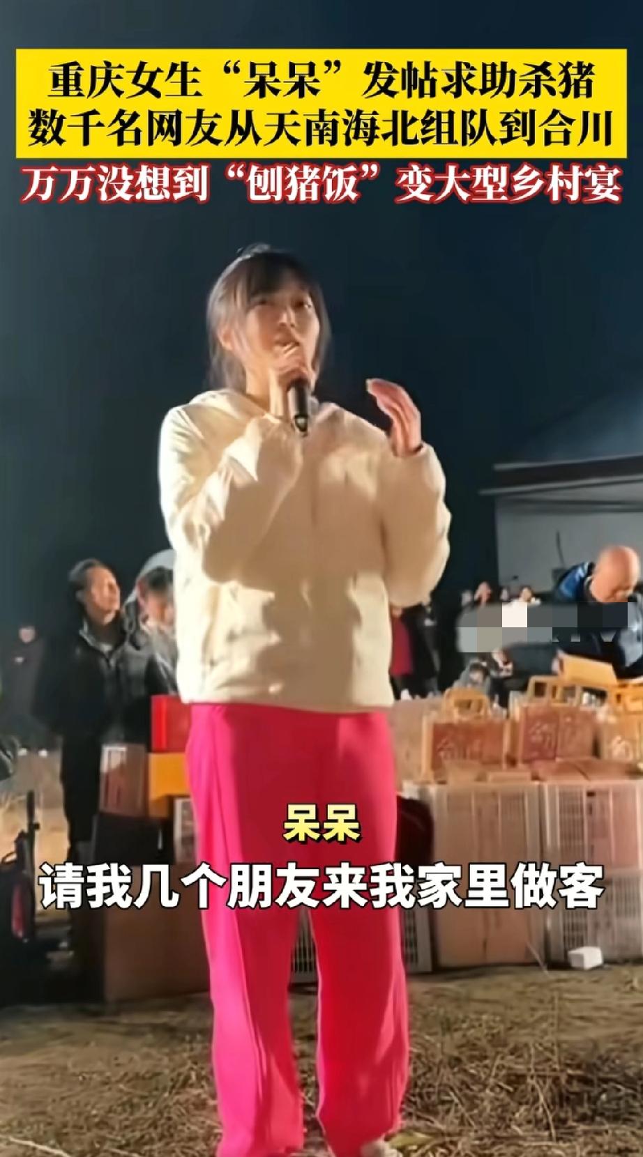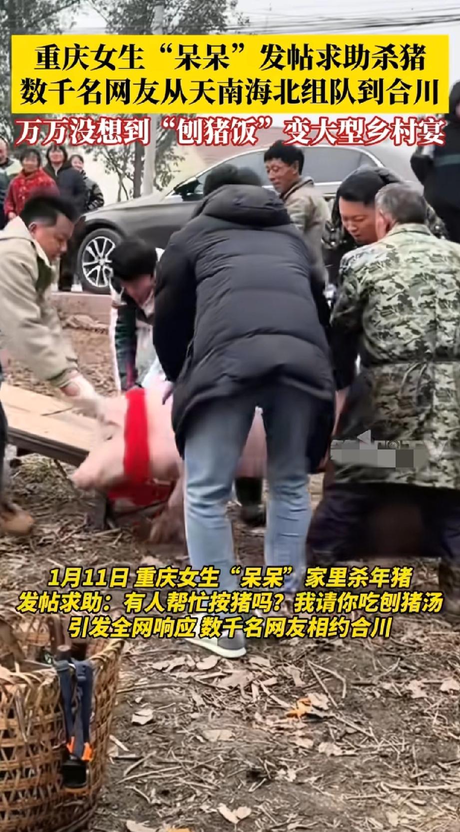太想回到小时候了, 过年有年味儿, 杀年猪、吃刨汤, 大家围在一起热热闹闹! 太能理解呆呆为什么能火!戳中了大家的乡愁,小时候的记忆。 现在城里过年,冷冷清清,邻居住对门都不认识,结果呆呆一条求助视频,上千人从四面八方赶过来,烧火的烧火,洗碗的洗碗,做饭的做饭,从不认识到搭把手,再到互相熟络聊生活,呆呆这事儿做的,让无数人的生活变得有意义! 更有趣的是豪车停村口,都市白领蹲灶前烧火做饭,画面又好玩儿又暖心! 没有套路,不带货,就纯纯请大家吃顿饭,再加上文旅和警察的助攻,把农家宴办成了嘉年华~ 过年情景 农村吃年猪 回老家过除夕