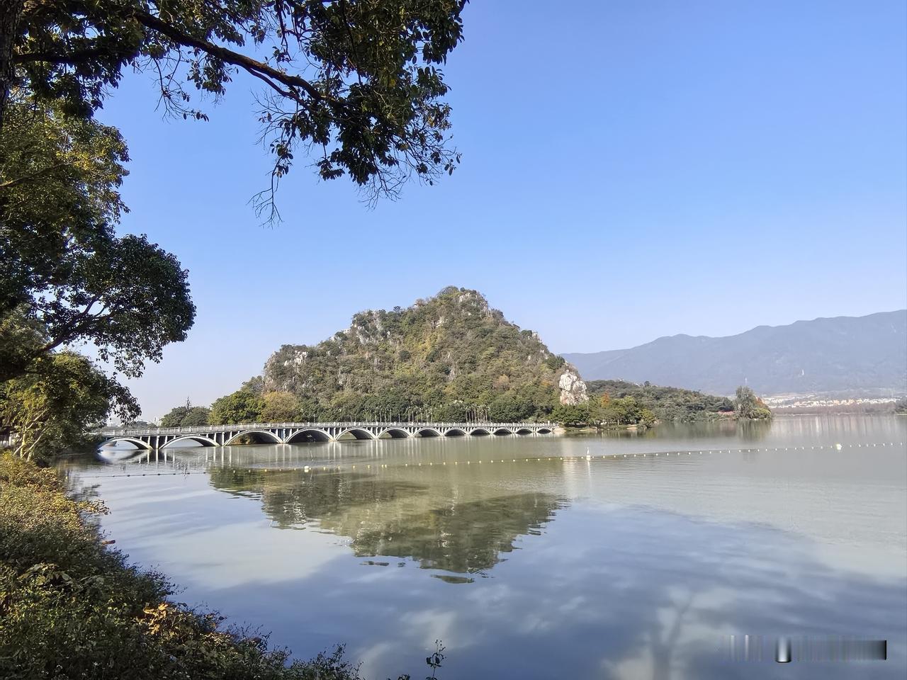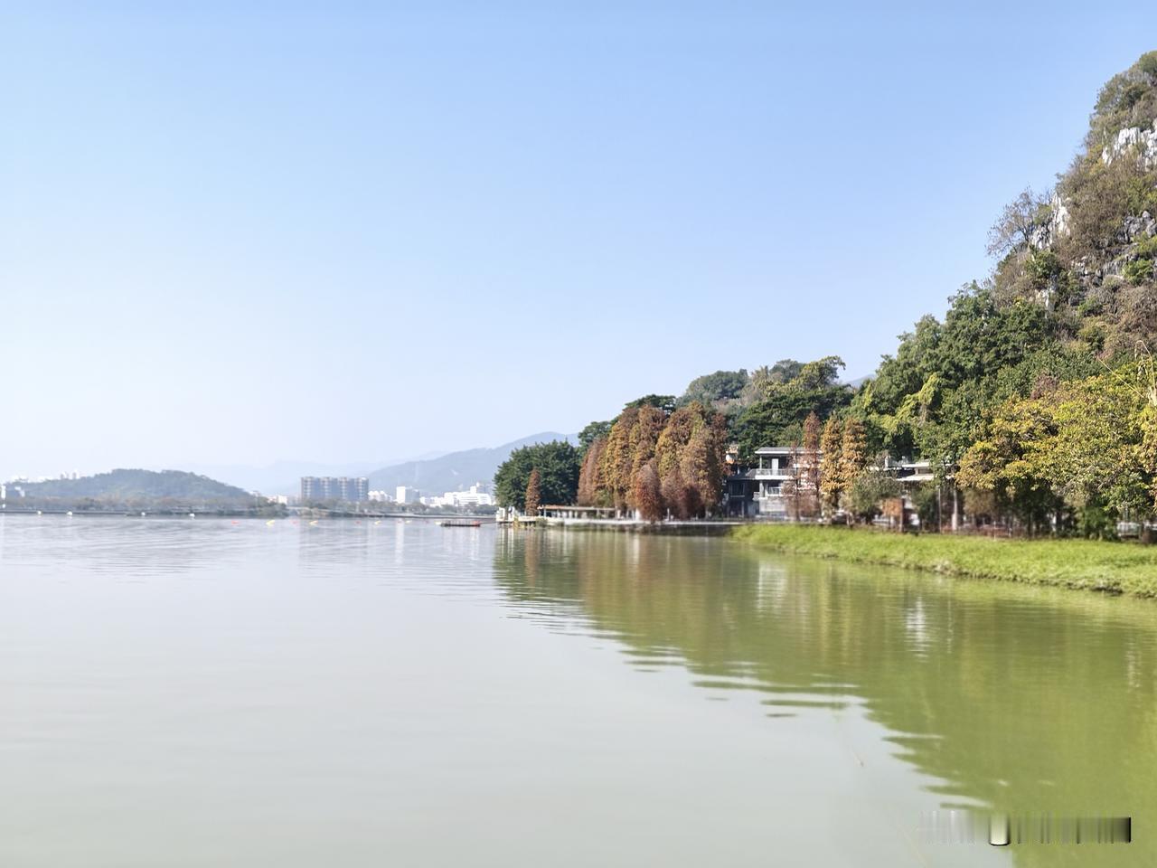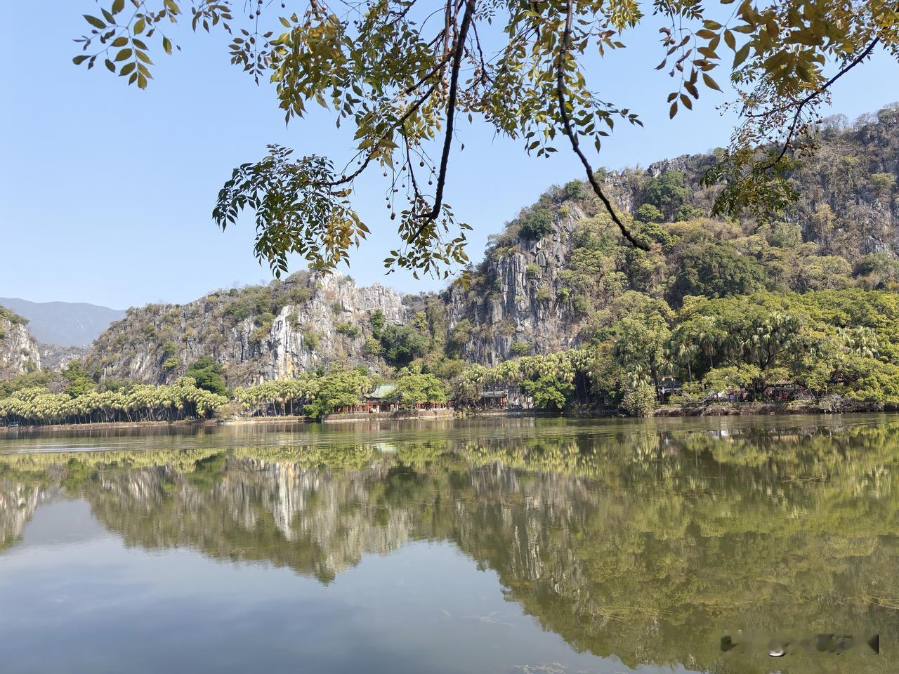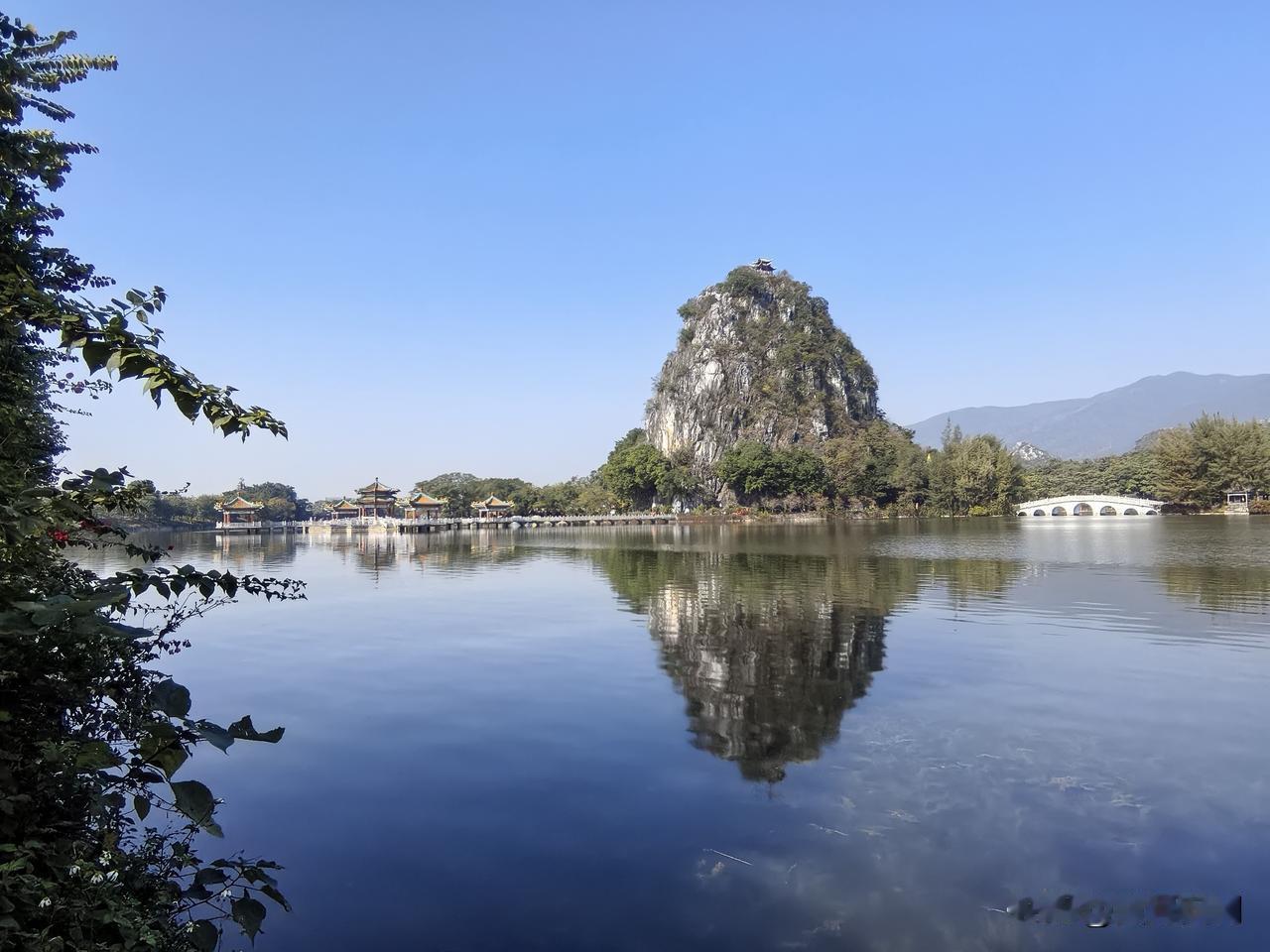 长久以来,在我心中,城市公园当以杭州西湖为最。然而今日来到肇庆七星岩,方知七星岩毫不逊色。 七星岩之美,美在其独特的地理位置。它环城而建,背后是连绵的山峦,好似被大自然轻柔地揽入怀中。其主体由七座石灰岩山峰构成,因此得名七星岩。这几座喀斯特岩溶地貌的岩峰,与湖泊景观完美契合,山清水秀,融为一体,造就了别具特色的景致。 伫立在七星岩前,正面的岩峰仿若一块巨大的屏幕,呈现着大自然的鬼斧神工。湖面波光潋滟,倒映着岩峰的倩影,山水相依,宛如一幅天然的画卷。原来,除了西湖,还有七星岩这般令人惊艳的城市公园。