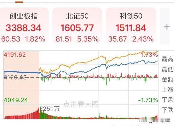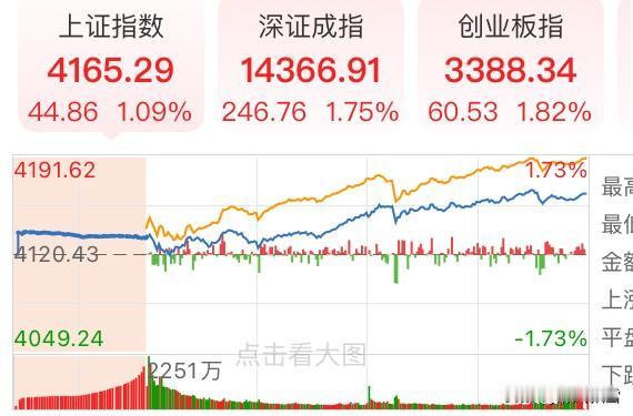 1月12日复盘,17连阳,明天走势? 市场全景复盘:放量大涨,情绪高潮,今日市场迎来全面爆发,指数、成交量、涨停家数均创阶段新高,资金大幅入场,情绪处于亢奋状态。 一、指数与量能表现 1、指数全线大涨:上证指数收于4165.29点(+1.09%),深证成指收于14366.91点(+1.75%),创业板指收于3388.34点(+1.82%),北证50更是大涨5.35%,科创50上涨2.43 %。呈现普涨格局。通过以上看出:科技领跑! 2、成交量急剧放大:两市成交总额36450亿元,较前一日放量4924亿元(+15.62%),较近60日平均成交量放大79.21%,说明资金入场意愿强烈。 二、涨跌停与赚钱效应 1、涨停家数创阶段新高:涨停家数突破200家,较前期底部(约50家)增长超3倍,显示资金做多情绪达到近期峰值。 3、上涨家数碾压下跌家数:上涨4144家,下跌仅1182家,其中5-1%涨幅区间多达2162家,市场赚钱效应全面扩散。不在主线赚指数; 4、跌停家数维持低位:仅9家跌停,说明抛压极轻,资金分歧较小。 三、资金流向 1、机构资金主导入场:机构资金净流入1007.91亿元,主力资金净流入342.66亿元,大户与散户资金同步跟进,形成“机构+散户”合力做多的格局。 2、资金全天持续流入:从分时图看,机构资金从开盘起即持续流入,午后加速进场,表明资金对后市高度乐观。 四、结合主线的解读 在今日普涨行情中,人工智能与商业航天两大主线表现尤为突出: 1. 人工智能:作为今日强度最高的板块,涨停家数最多,资金涌入最明显,与市场整体放量形成共振。 2. 商业航天:作为中期持续性主线,在指数大涨背景下,板块内连板股梯队稳固,资金抱团迹象明显。 五、明天走势 单纯技术面:目前单边上涨,加速阶段;上周五、今天,机构、主力净流入资金破纪录,没有分歧,形成合力,沪指明天继续高开,沪指明天如果10: 30分放量继续收阳,明天仅跟踪成交量即可! 小结:指数仅用来控仓位,重点找对主线是核心!
