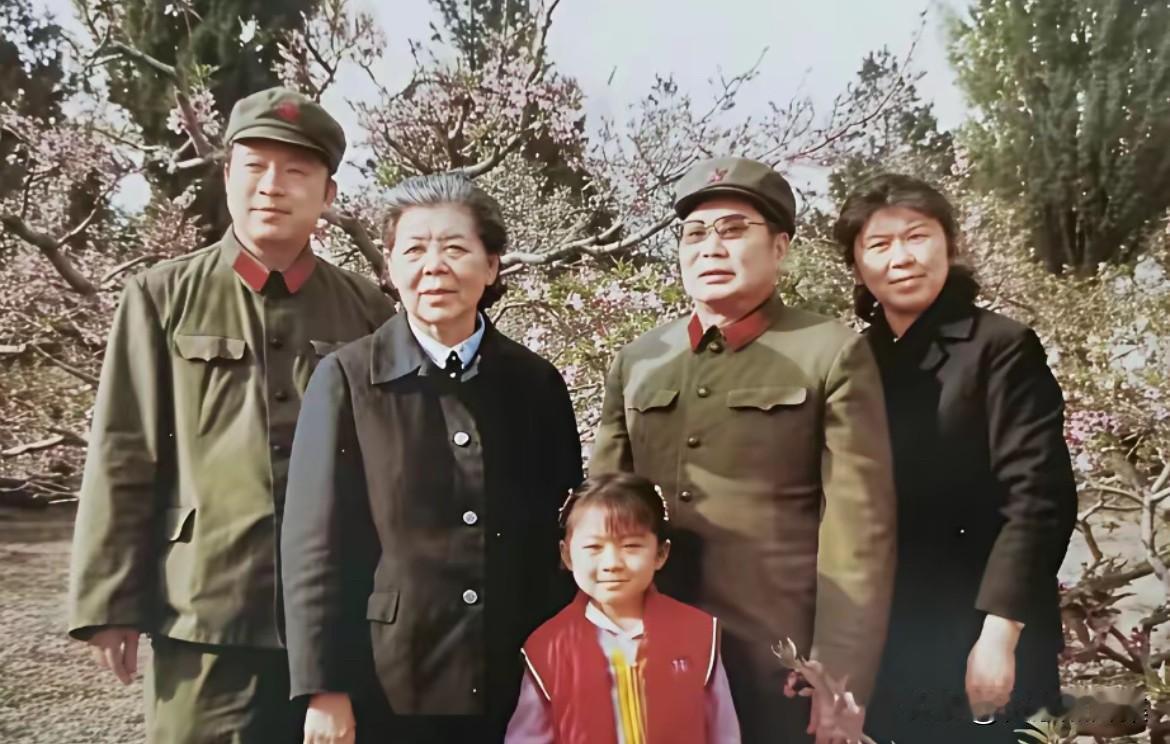 八十年代初,杨得志将军与夫人申戈军同三女儿秋华一家在一起的合影。申戈军是河北威县人,1938年参加革命,长期从事机要工作,1940年与杨得志结婚。申戈军曾回忆,抗战时期她带着孩子在后方,杨得志在前线打仗,有时几年见不到面。解放战争时期,申戈军随部队行动,但夫妻仍聚少离多。两人育有子女六人(三子三女),杨秋华是他们的三女儿。