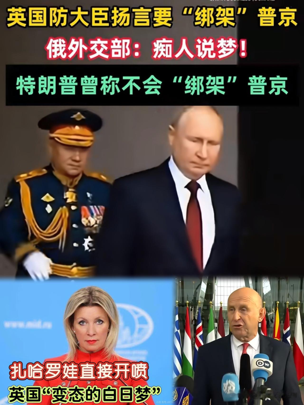 演双簧还是二人转?英国那位国防大臣,确实有点意思! 近日去乌克兰访问,被记者问了个比较狠的问题,问他最想‘绑架’谁?他直接点名俄总统,理由嘛,战争罪行。 这外交姿态,做得确实够硬的。 但俄外交部一听,火大了!扎哈罗娃直接开喷,说这是英国“变态的白日梦”。 更有意思的还是美好那边,老特前两天刚表态,他不会绑架普京,因为他们关系很好! 这就奇了怪了!同一个阵营,两种画风,这哪是外交?分明是隔空表演,是演双簧还是二人转呀? 说到底,狠话谁都会放,阵营里的各怀心思,比嘴上的强硬表态,更耐人寻味 英国俄罗斯冲突