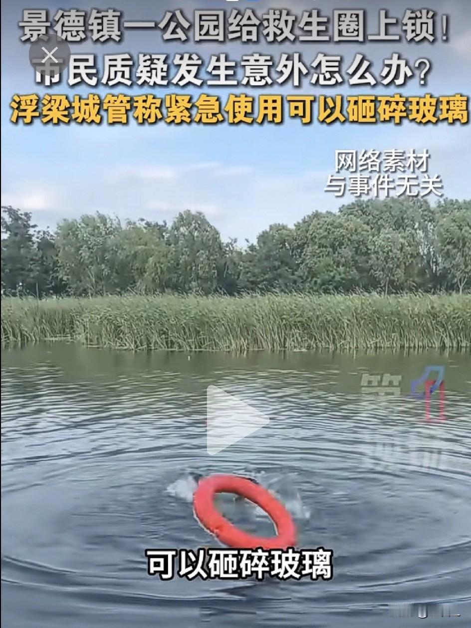 景德镇公园救生圈上锁引争议!城管神回复:紧急时砸玻璃,不用赔!网友恍然大悟:上锁是为了防挪用! 近日,江西景德镇三贤湖公园的一排救生设施,成功把自己“锁”上了热搜——救生圈和救生衣整整齐齐躺在玻璃柜里,还配了锁! 有市民直呼看不懂:“这是救人用的,还是展览用的?” 视频里,橙色的救生圈和救生衣被关在透明玻璃柜中,一把小锁格外显眼。 拍摄者哭笑不得:“要是有人落水,还得先找钥匙、再砸玻璃,这是考验施救者的开锁速度吗?” 网友瞬间炸锅: “建议配套配个锤子,标签写:‘紧急情况请砸,玻璃比命脆’!” “小偷真要偷,锁柜子有用?这是防好人还是防坏人?” “落水的人:等一下,我先去公园管理处登个记…” 在一片吐槽声中,浮梁县城管局工作人员淡定回应:“紧急情况下,直接砸玻璃使用,不用赔!” 这话一出,评论区画风突变: “懂了,这不是锁救生圈,是锁玻璃!” “建议玻璃上贴字:‘此玻璃价值低于一条命,请随意!’” “所以平时锁着,是怕救生圈自己跳湖游泳?” 管理方其实也有苦衷:救生设备以前常失踪,有的被偷走卖废品,有的被小孩拿来当泳圈玩。锁起来实属无奈——毕竟救生圈没了,真出事更麻烦。 但也有市民不买账:“小偷要偷,锁柜子照样偷;可救命的时候,多砸一道玻璃就多误十秒黄金时间!” 有网友献计献策: “不如装报警器,一动就响,既能防盗又不耽误拿!” “学学共享单车,扫码借用,乱拿的上失信名单!” 最损建议:“在旁边放个假监控,贴标语:‘您已进入救人直播现场’!” 这事到底咋整? 公共安全设施的管理,确实像走钢丝: 🍒太松:今天锁救人,明天救生圈就在废品站。 🍒太紧:紧急时刻变成“密室逃脱”。 或许真正的钥匙不在锁上,而在人心——既要防住少数人乱拿,更要让多数人敢用、会用。 万一在三贤湖遇见险情,请记住城管授权口诀——“砸玻璃,不赔钱,救人优先!”至于平时……就让救生圈先安静地做个“柜中美人”吧。 救生设备属于救命资源,非紧急情况请勿“调戏”玻璃柜。您的每次守法,都是对生命的备份保护。 素材来源:第一现场,侵联删!