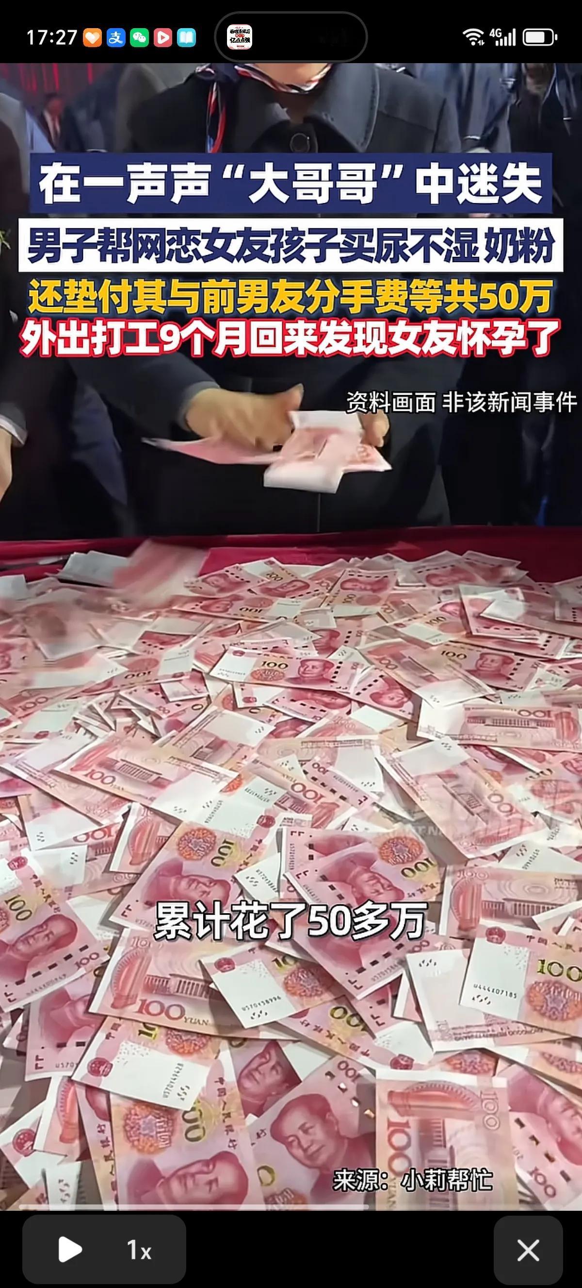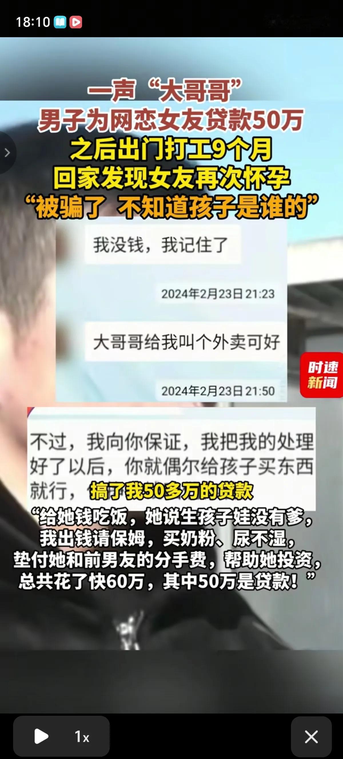 男子在网恋女友的一声声大哥哥中午迷失了自己,又是给女友孩子买奶粉,又是买尿不湿,