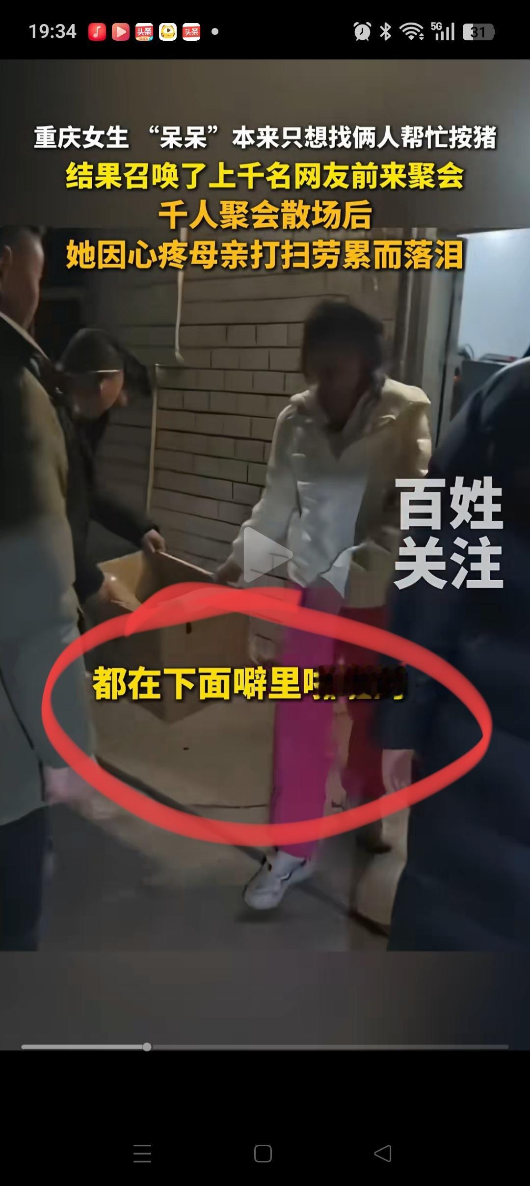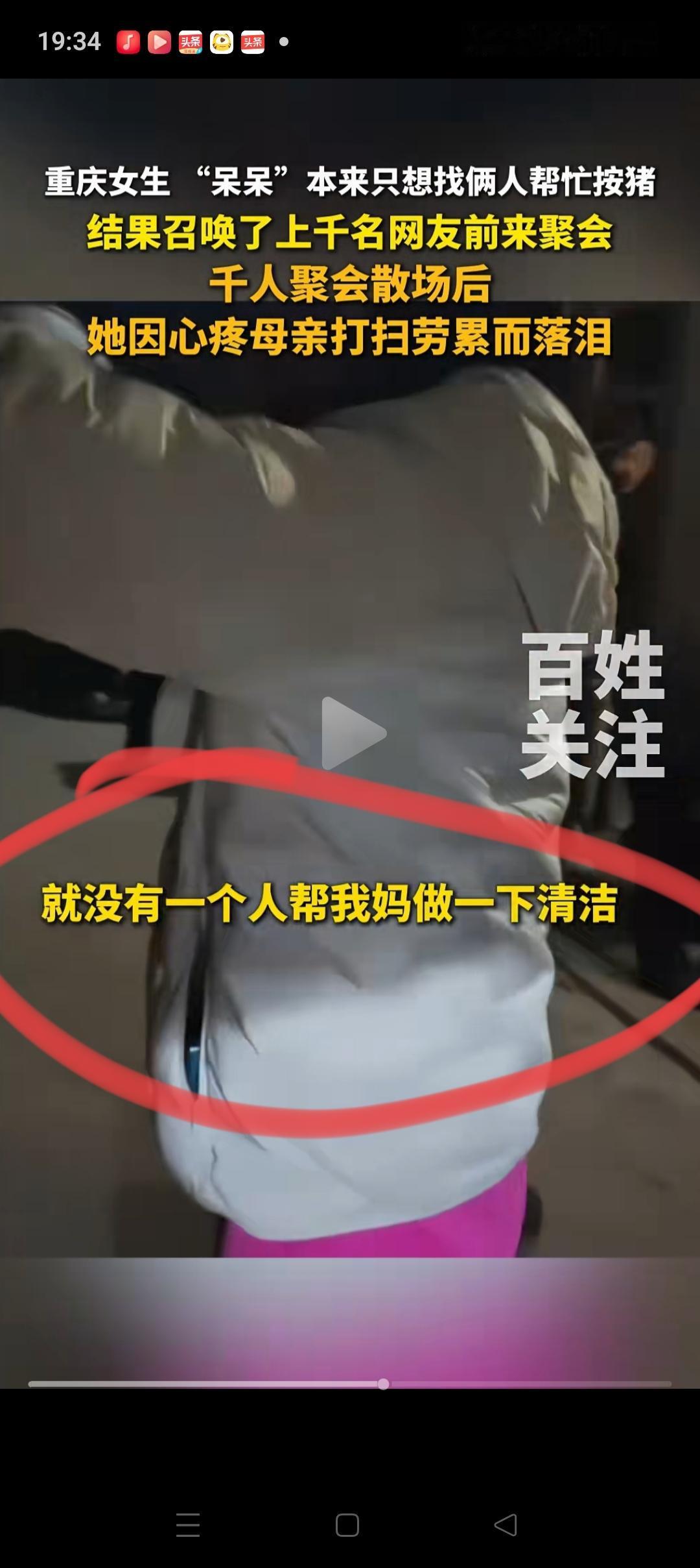 估计现在最破防的就是呆呆的老妈了, 说好的过年杀年猪, 结果一片肉没吃着,腊肉也没熏,就这么免费的都送给别人吃了。 而且每天一大早就要起床给几百号人做饭,还是二顿,晚上10点才结束。 好不容易忙完了,本以为有人帮忙打扫卫生,结果根本没人管的! 只好又默默的一个人打扫卫生,洗碗。 也难怪呆呆都哭了!说:我刚刚看到你们那么多人在下面说话,就没一个人给我妈帮忙的,没一个人动手,很无助。[流泪] 真的心疼呆呆的老妈,一个人默默付出,虽然只有自己的女儿懂得,但也够了。。。