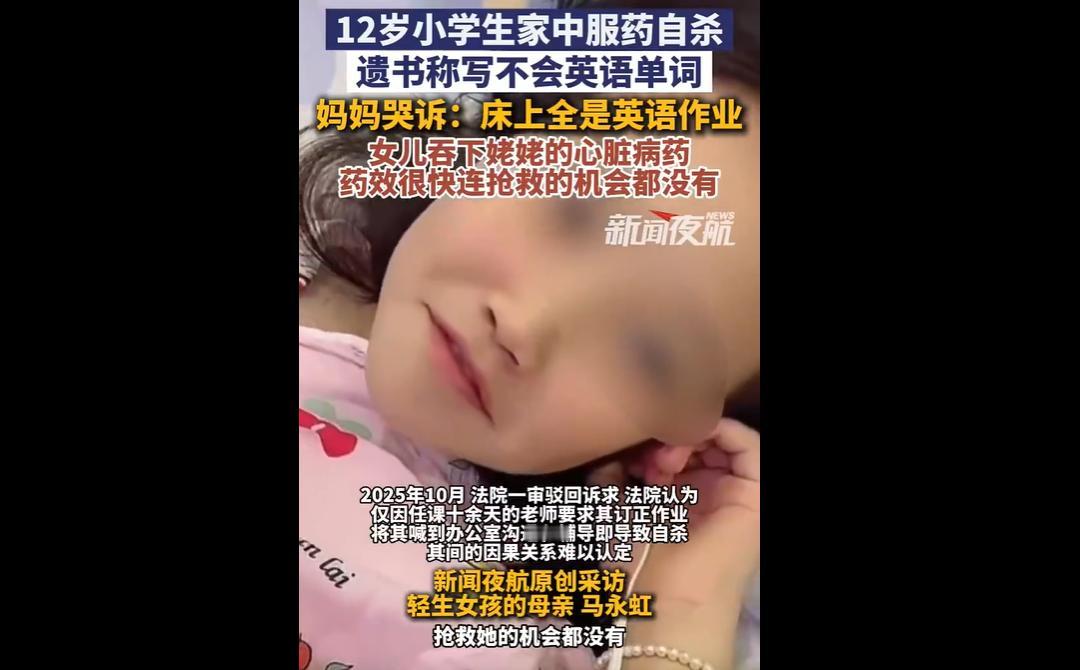江苏六年级女生许诺请假期间,吞服100粒心脏病药自杀,遗书控诉学业劳累与被嘲笑肥胖。 母亲起诉学校未尽责被驳回仍上诉,网友质疑家庭监护与言语伤害,也反思双减落实及教育责任问题。 六年级女孩许诺的悲剧,是多重压力与疏忽叠加的结果,遗书中“好累好累”的倾诉,藏着无数被忽视的求救信号,令人痛心不已,也给家庭、学校敲响了警钟。 单亲家庭的她本需更多温暖,却要承受“嘲笑胖”的言语伤害,母亲误判其情绪,外婆将强效药随意放置,这些疏漏成了致命隐患。 家人的无心之举,往往最易刺痛孩子,倾听与接纳才是最好的守护。 学业压力与双减落实不到位也难辞其咎。 满是英语作业、不会的单词,暴露了机械学习的负担。 而优秀教师因被起诉而不愿额外辅导,折射出教育责任的萎缩,如何平衡教学责任与教师权益,值得深思。