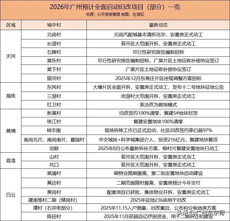 十五五开局之年,广州还是要加大旧改力度,谁能接住这波红利? 2026年广州决定继续加码城市更新改造,计划投资超过2000亿,重点推进沙面、白鹅潭、广州北站等6个城市更新片区改造,而列入今年的旧改项目也不少,主要集中在海珠、天河、黄埔、白云等区域,将会超过50个项目全面启动或者开拆。 它们中大部分是村民改造意愿强烈,签约率高,资金到位、安置房也顺利启动建设,这些改造的前置条件都具备情况下,无疑会大大加快旧改进度,减少开拆难度,年内有望迎来实质性的进展!