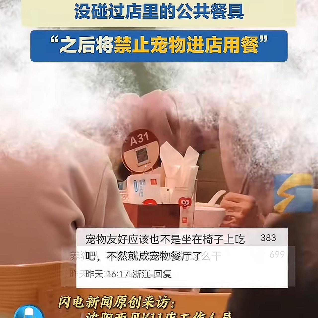 这两天沈阳西贝又火了,不过这次不是因为莜面——有顾客带着狗在餐厅用餐,狗直接上了座位,主人还用筷子把食物放到座位上喂狗。视频一出,网友立马炸锅:“下次是不是得给狗发VIP卡?”“建议开辟人狗共餐专区,名字就叫‘汪汪厅’。” 店家回应倒很淡定:狗有专用餐具,没碰公共餐具。可这话就像说“我家的猫只喝专用矿泉水”一样,隔着屏幕都能感受到其他食客的窒息。有人吐槽:“带着孩子吃饭,看见邻座狗在餐椅上蹭来蹭去,手里的羊肉串瞬间不香了。” 宠物友好本是好理念,但“友好”不等于模糊界限。餐厅毕竟是公共空间,有人对毛发过敏,有人心理膈应,更别说潜在的卫生隐患。就像网友说的:“你要真宠狗,回家摆桌满汉全席都没人管,但在外头得讲究个分寸。” 这事儿最魔幻的是评论区画风:有人调侃“西贝果然从不坑穷人”,还有人戏称“以后带狗吃饭得主宠一起趴着用膳”。当宠物权利无限扩张,普通人的舒适区反而越缩越小。其实争议背后,拷问的是公共场合的文明底线——尊重从来是相互的,不能因为爱狗,就让怕狗的人无处可坐。 现在出门吃饭都得先问一句:“你家允许宠物上桌吗?”不知道的还以为在选宠物餐厅。要我说,西贝真该立个新规:狗可以进门,但请遵守“地面原则”——四脚着地,与人同乐但不同桌。毕竟文明的距离,有时候就是一把椅子的高度。西贝餐饮 西贝降热搜账单 西贝餐厅事件