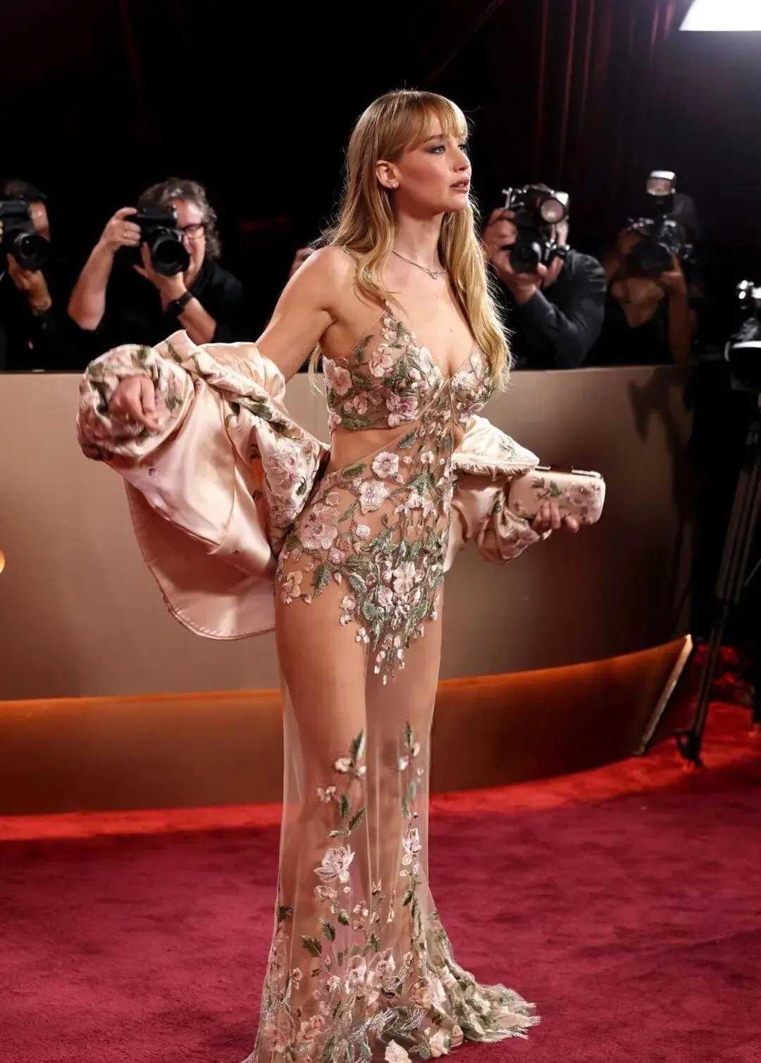 Jennifer Lawrence,当地时间1月11日举行的2026年第83届金球奖颁奖典礼上。 身穿纪梵希(Givenchy)透视深V礼服登场,艳惊四座!