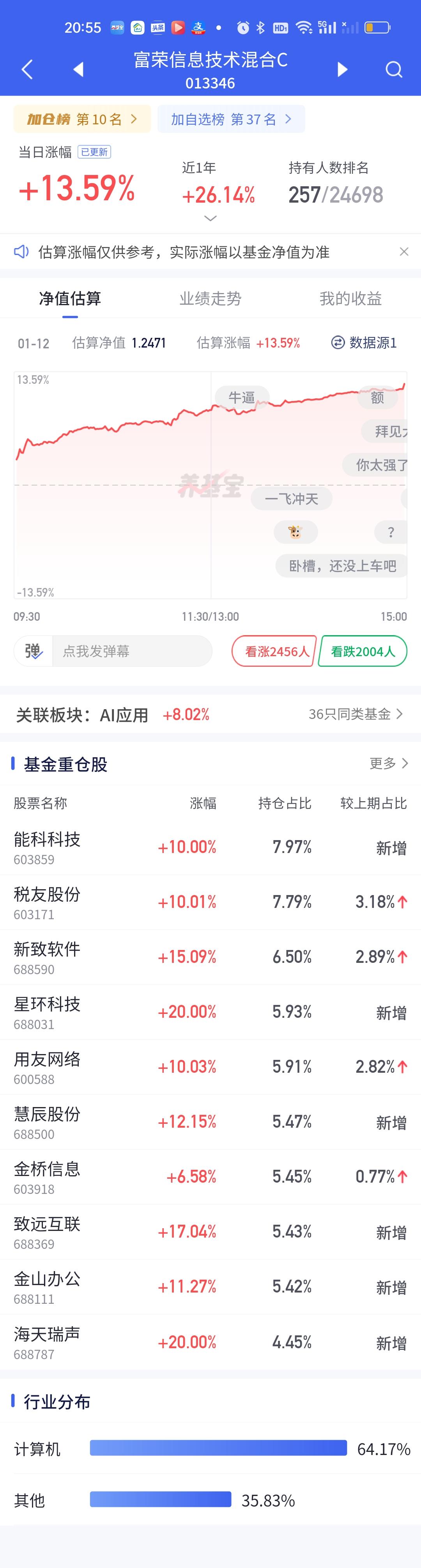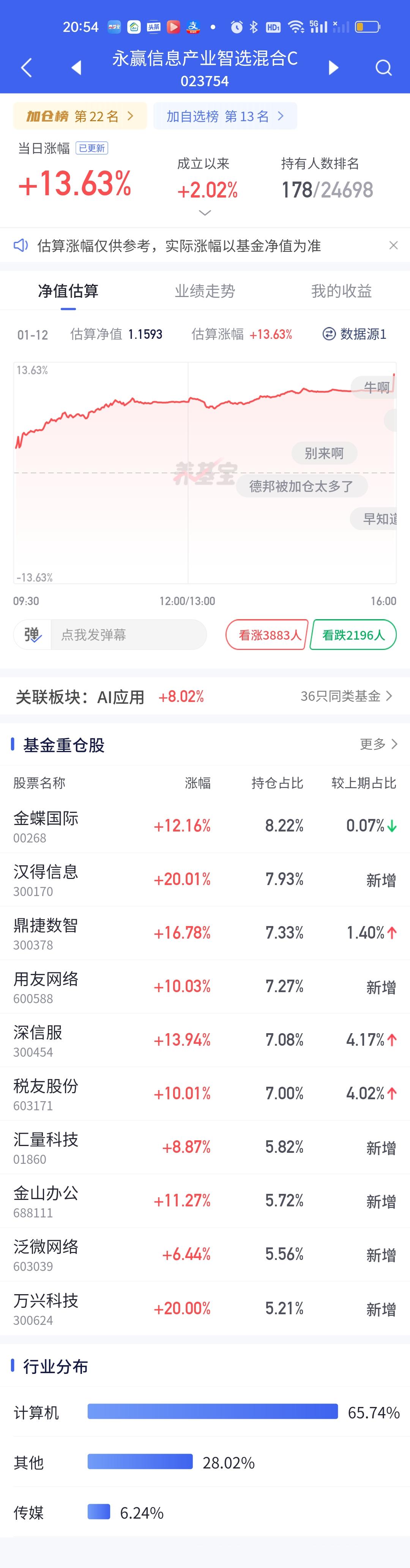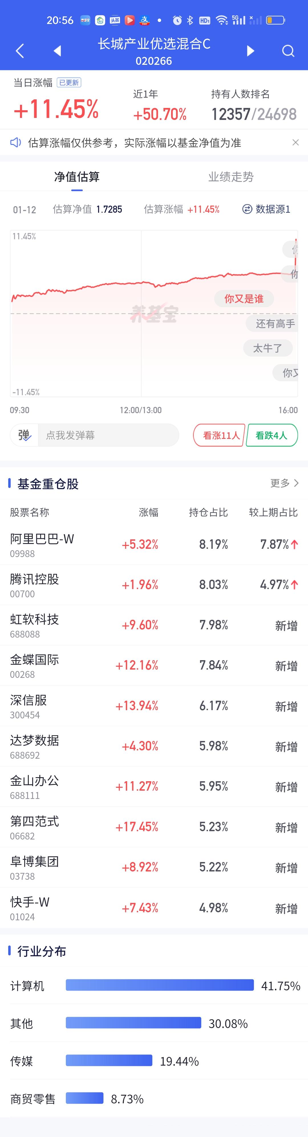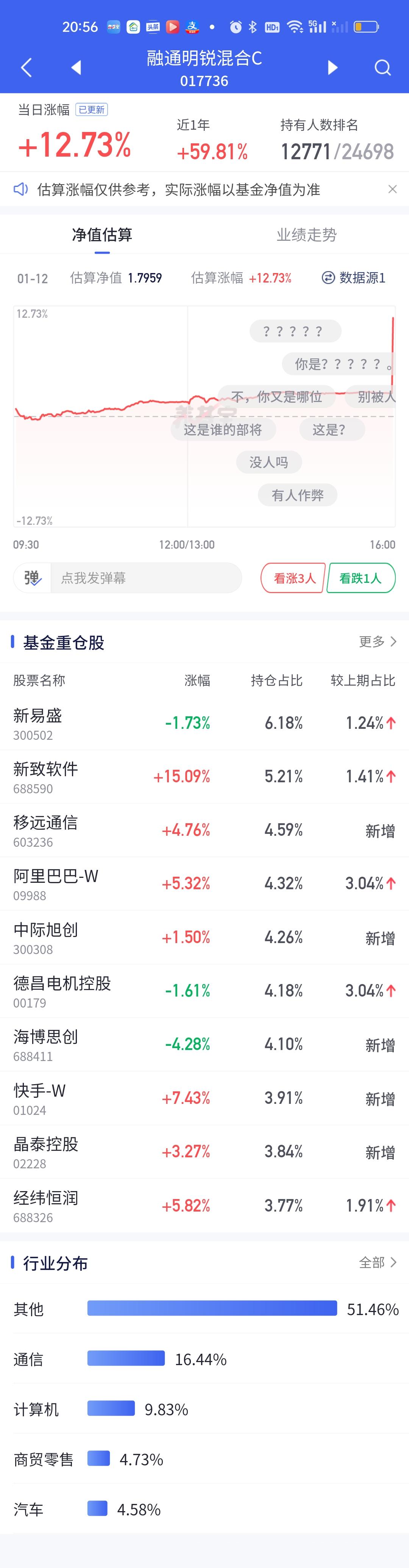 稳盈这个超级低开有点让人摸不透。和西部利得的超级高开形成了鲜明的对比,一个13.65开8.31,一个8.52开14.16,里外差了5个点以上了。看稳盈的持仓今天最少也要开14%才对,因为它前十大重仓股20%的涨停就有4只,10%的涨停2只,剩余4只涨幅也都在14%以上,按照道理无论如何不可能只开8个多点。难道调仓换股了?今天广发沪深港精选最牛0.84开10.90。