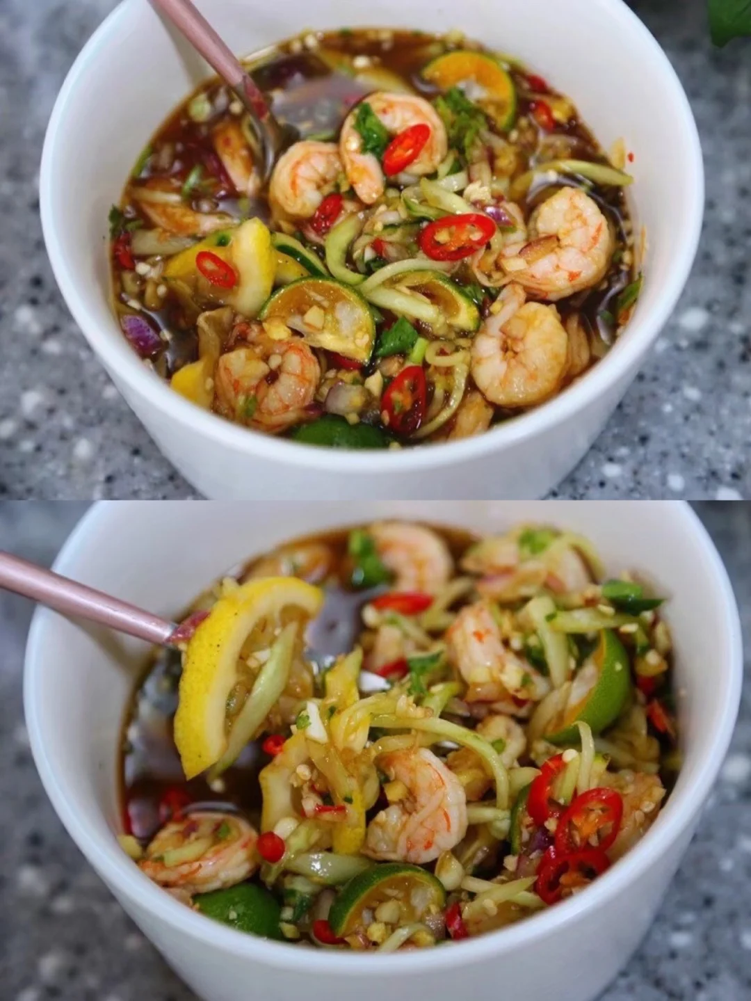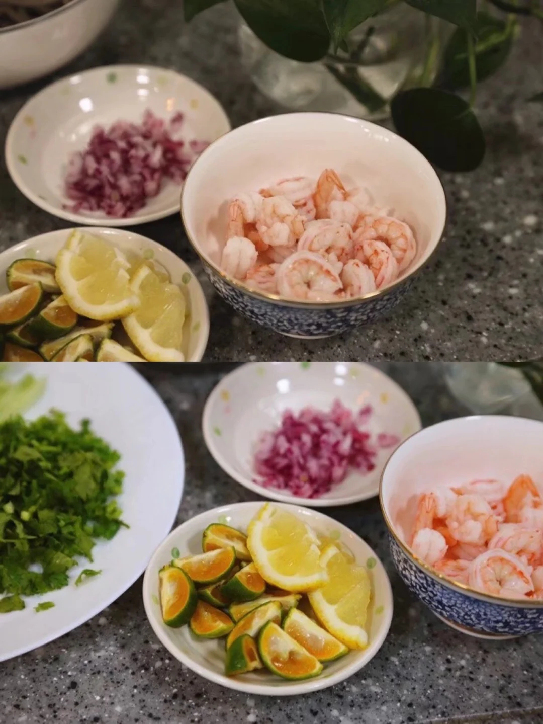 9.切好的配菜放入一个大一点的容器内,我切了些柠檬片进去 喜欢酸辣口感的亲还可以适当挤一些柠檬汁儿