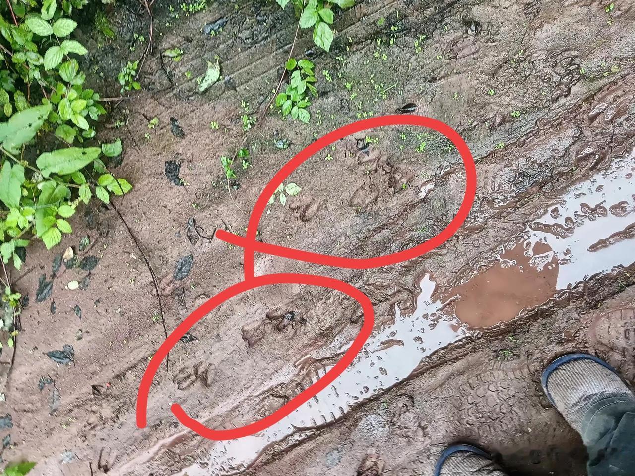 这是我夏天刚下完雨去山顶溜达拍下的照片,有哪位大神知道这是什么动物的🦶印呢?也有说是獾的,也有说是狼的?也有说是野猪的,大家有知道的吗?请在评论区留言评论!