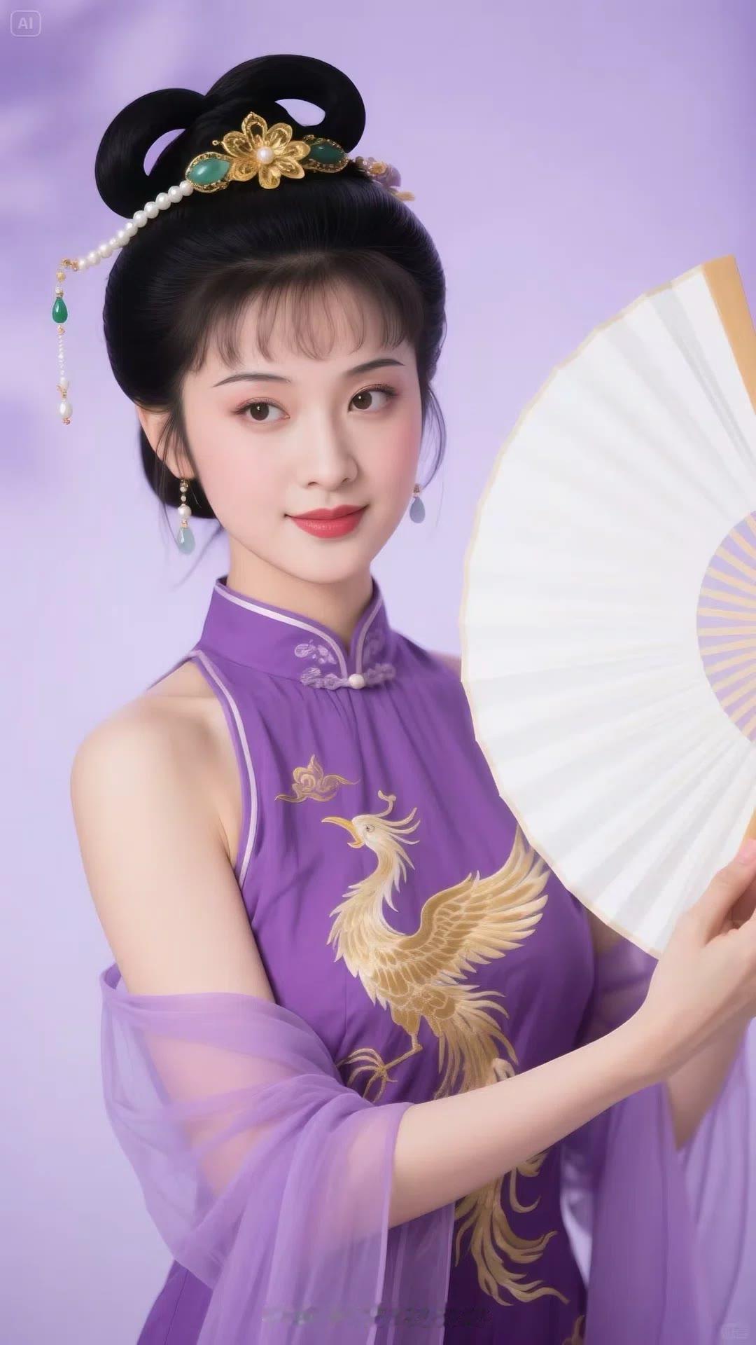 古典美人手持团扇,优雅动人