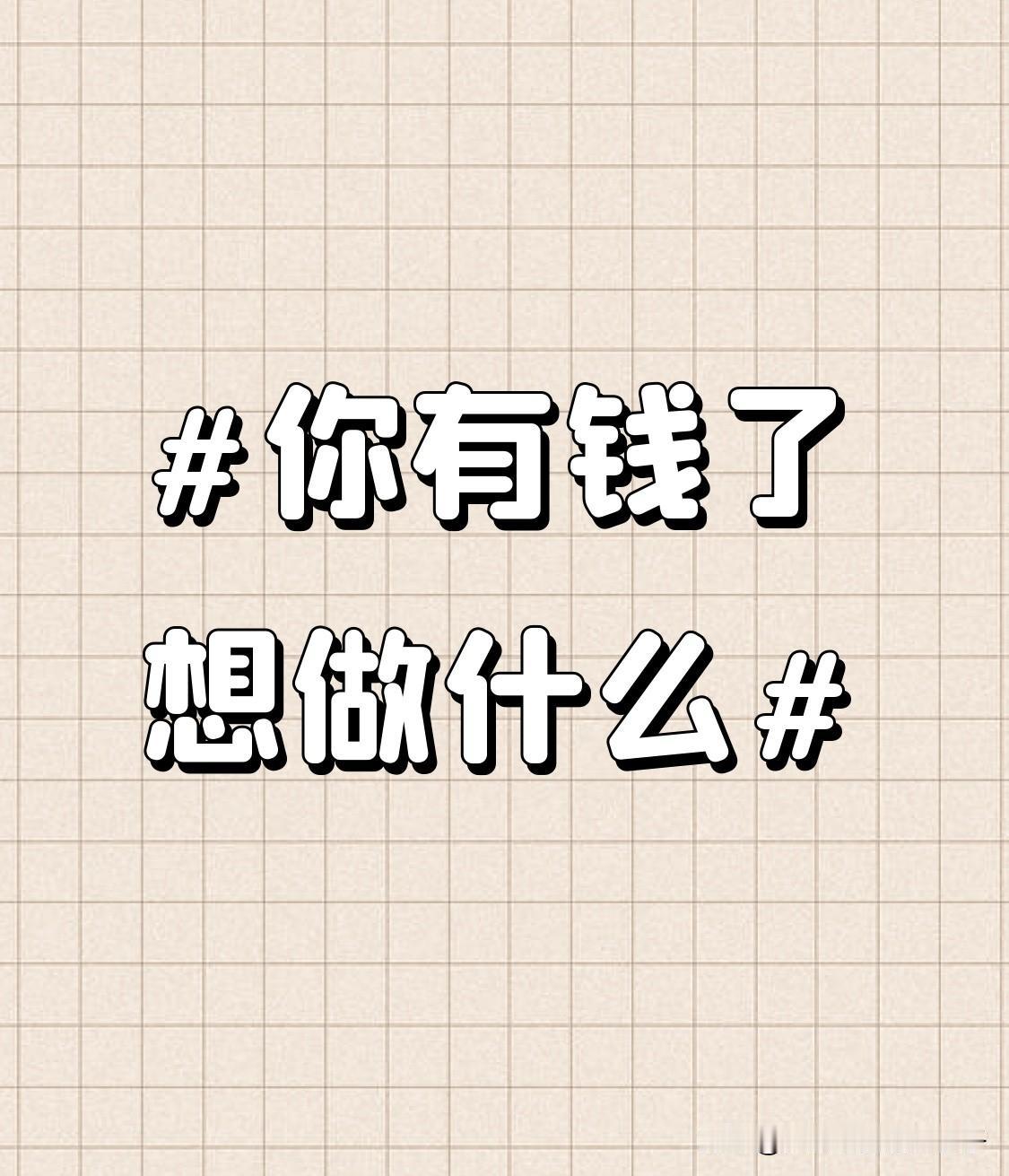 你有钱了想做什么要是我有钱了,首先肯定不想再上班,天天为钱奔波太累了。我打算先