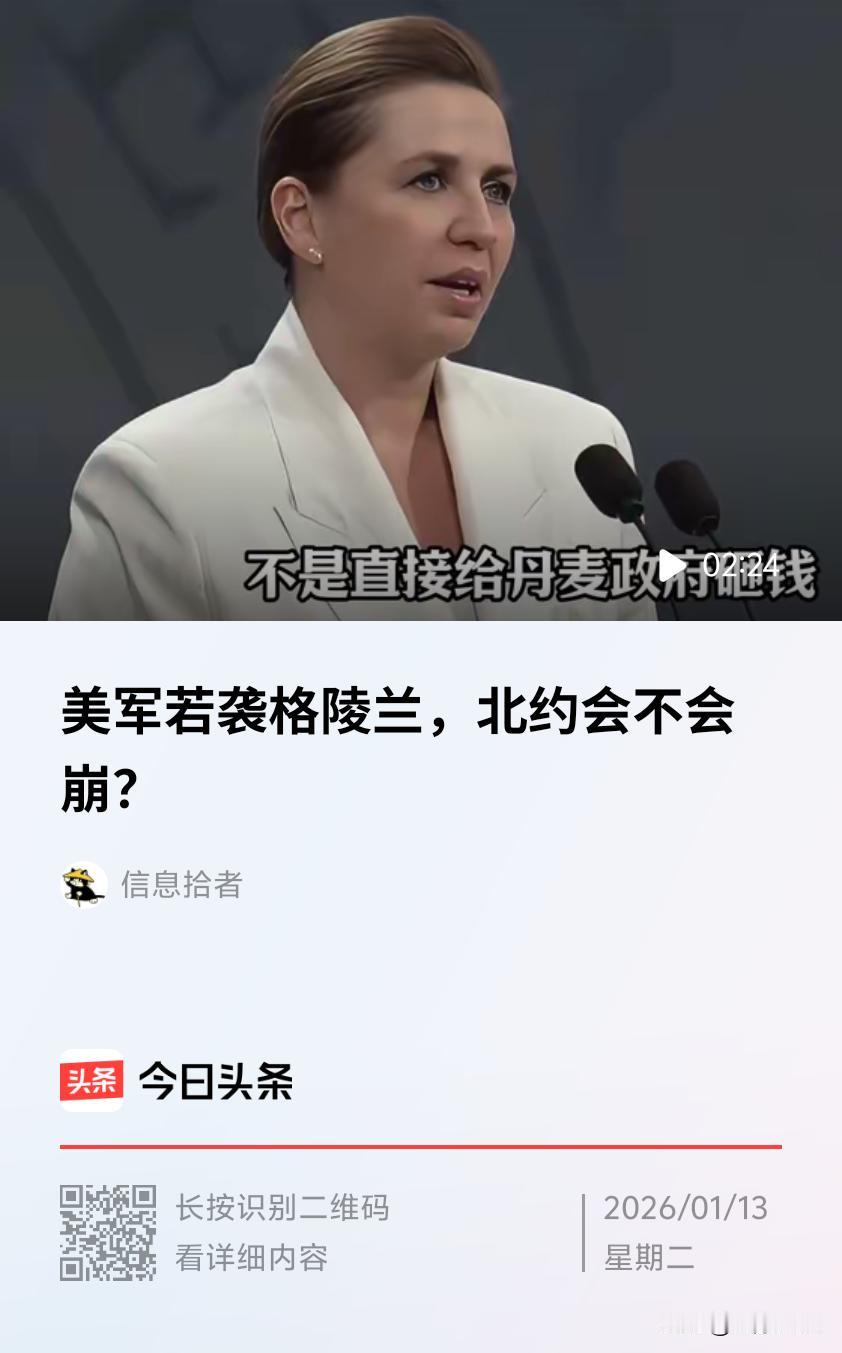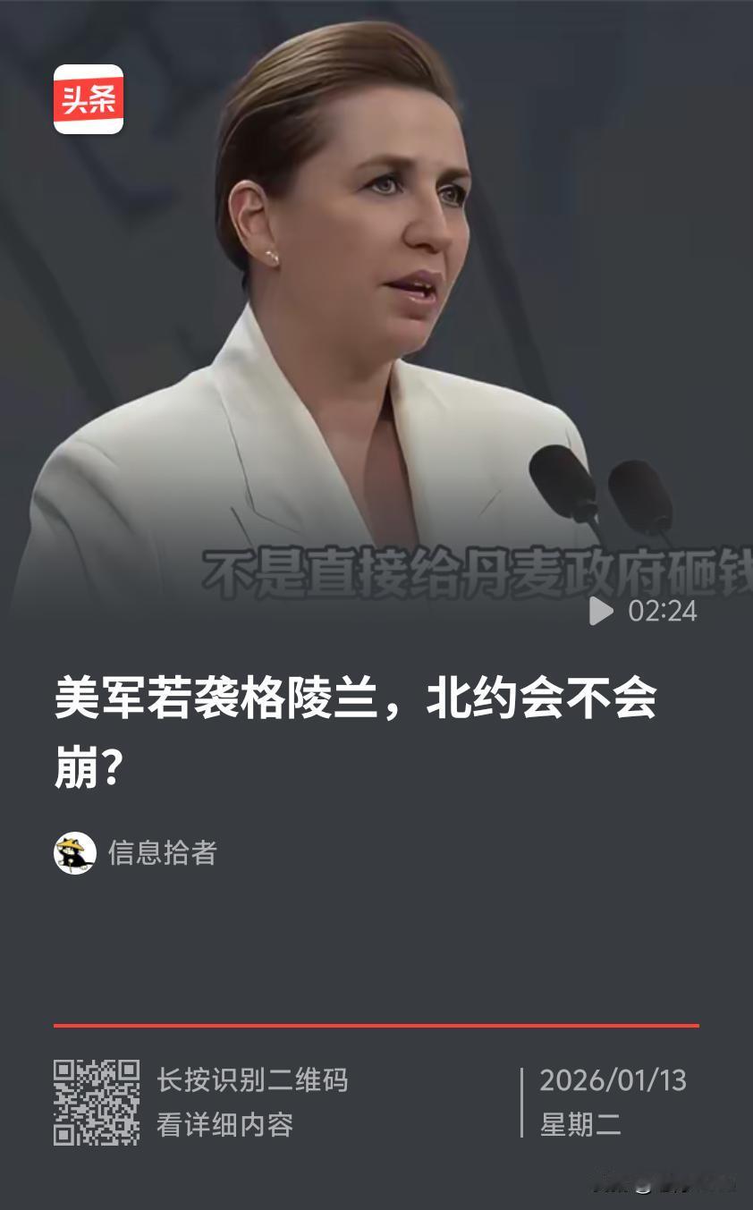 如果美军入侵格陵兰岛,北约很可能会解体。主要原因如下: ● 违背北约“集体防御”原则:北约赖以生存的基石是“集体防御”原则,即对一个成员国的攻击应被视为对所有成员国的攻击。格陵兰岛是丹麦的自治领地,而丹麦是北约成员国。美军入侵格陵兰岛,相当于攻击北约盟友,这严重违背了北约的这一核心原则,会从根本上动摇北约存在的基础。 ● 面临巨大政治代价:美国智库北极研究所所长罗曼·许法尔认为,美国军事攻击北约盟友,将“意味着北约彻底终结”。同时,也有观点指出一旦发生这种情况,北约直接就会崩溃。 虽然目前北约内部存在诸多矛盾,其作用也在一定程度上被削弱,但美国与西欧国家之间仍存在利益一致性,且需要北约这个共同的军事指挥体系以及就重要国际问题对话的框架。不过美军入侵格陵兰岛这一行为性质过于恶劣,会打破现有的利益平衡和合作基础,使北约各成员国之间的信任关系荡然无存,极大可能导致北约解体。