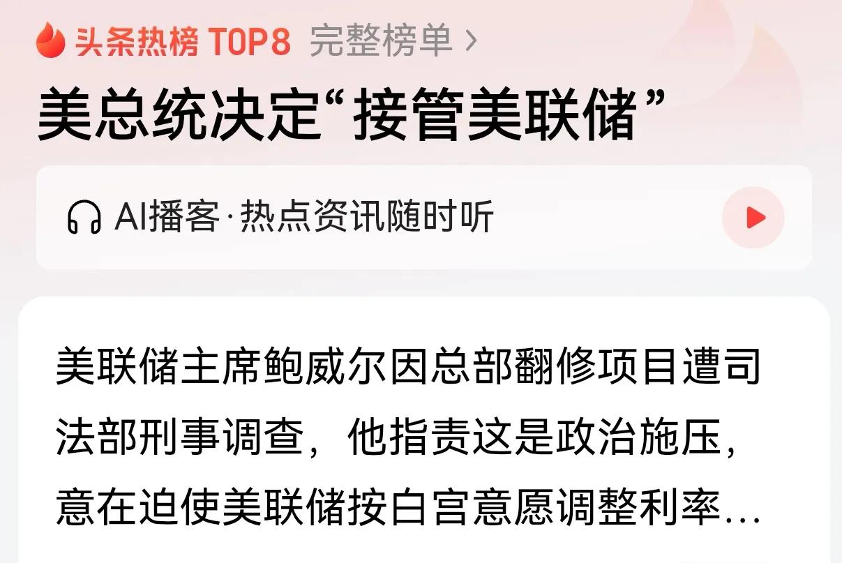 特朗普对内部下手,要求逮捕鲍威尔,接管美联储 特朗普这位闯进了瓷器店的这头大象现在正处于疯狂状态,不仅仅对外疯狂的难以控制,对内也开始疯狂了。 央视和环球时报报道,美联储主席鲍威尔1月11日晚证实,特朗普政府因他2025年夏天对美国国会所作证词,威胁对他提起刑事指控,并已于当地时间1月9日向美联储发出传票。 其实,特朗普因为当初要求美联储降息,而鲍威尔坚持美联储的独立性,从此接下梁子。现在,特朗普决定利用国会证词名义提起诉讼,还是要向鲍威尔施加压力,其实是想要真正的掌控美联储。 看吧,对外,抓捕马杜罗,强夺格陵兰,剑指加拿大。还准备出兵古巴,打击伊朗。对内这又开始起诉鲍威尔。开始了!一场美国的大动荡即将开始。 上帝欲让其灭亡,必先让其疯狂。这才上任一年多,就已经天翻地覆。现在已经里外不落人,不知道特朗普竞选时受伤的耳朵好利落了吗?