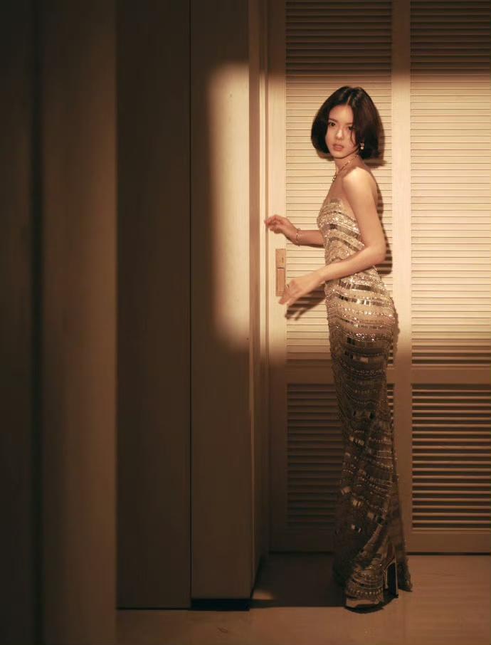 赵今麦活动造型杀疯了!短发鎏金裙美出新高度 昨晚活动红毯,赵今麦造型直接出圈!一头清爽短发搭配鎏金抹胸长裙,灯光下裙摆流光溢彩,衬得她肩颈线条超优越。少女感与成熟韵味完美混搭,这“妈咪级”美貌太绝,镜头前每帧都惊艳,时尚表现力狠狠拉满!
