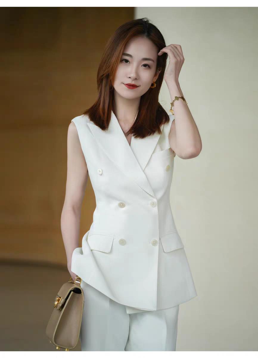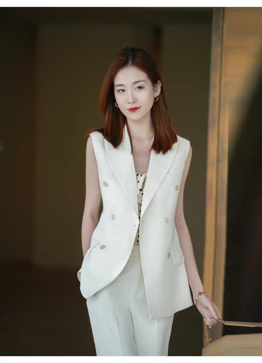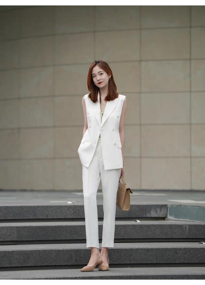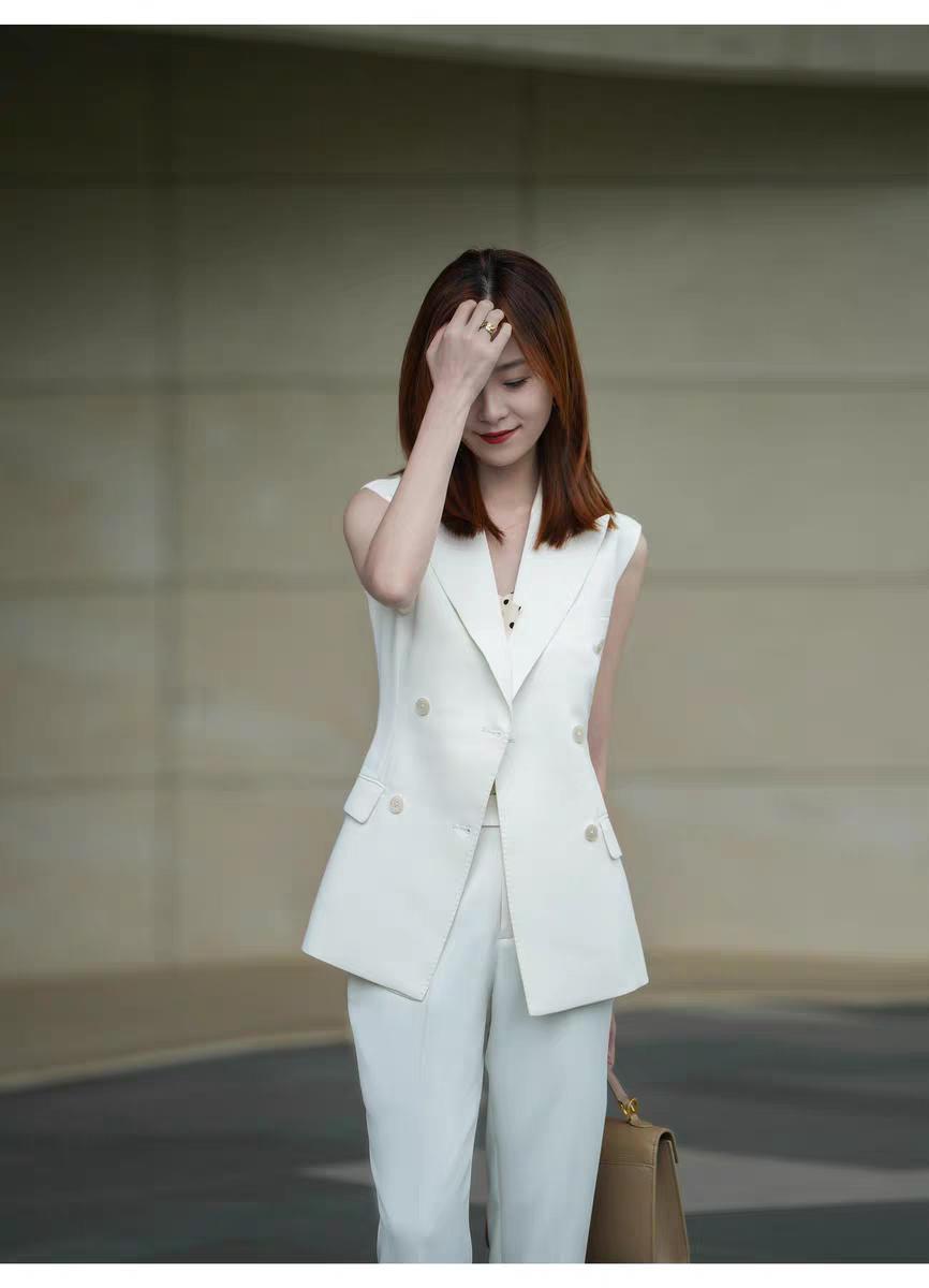 《修身OL马甲白色西装长裤套装》办公室利器。职场装西装 马夹职业装 职业装背心马甲 职场西装马甲 35岁的职场女性怎么穿? 穿搭 职场女性西装应该怎么穿 修身职业西装怎么搭才好看?