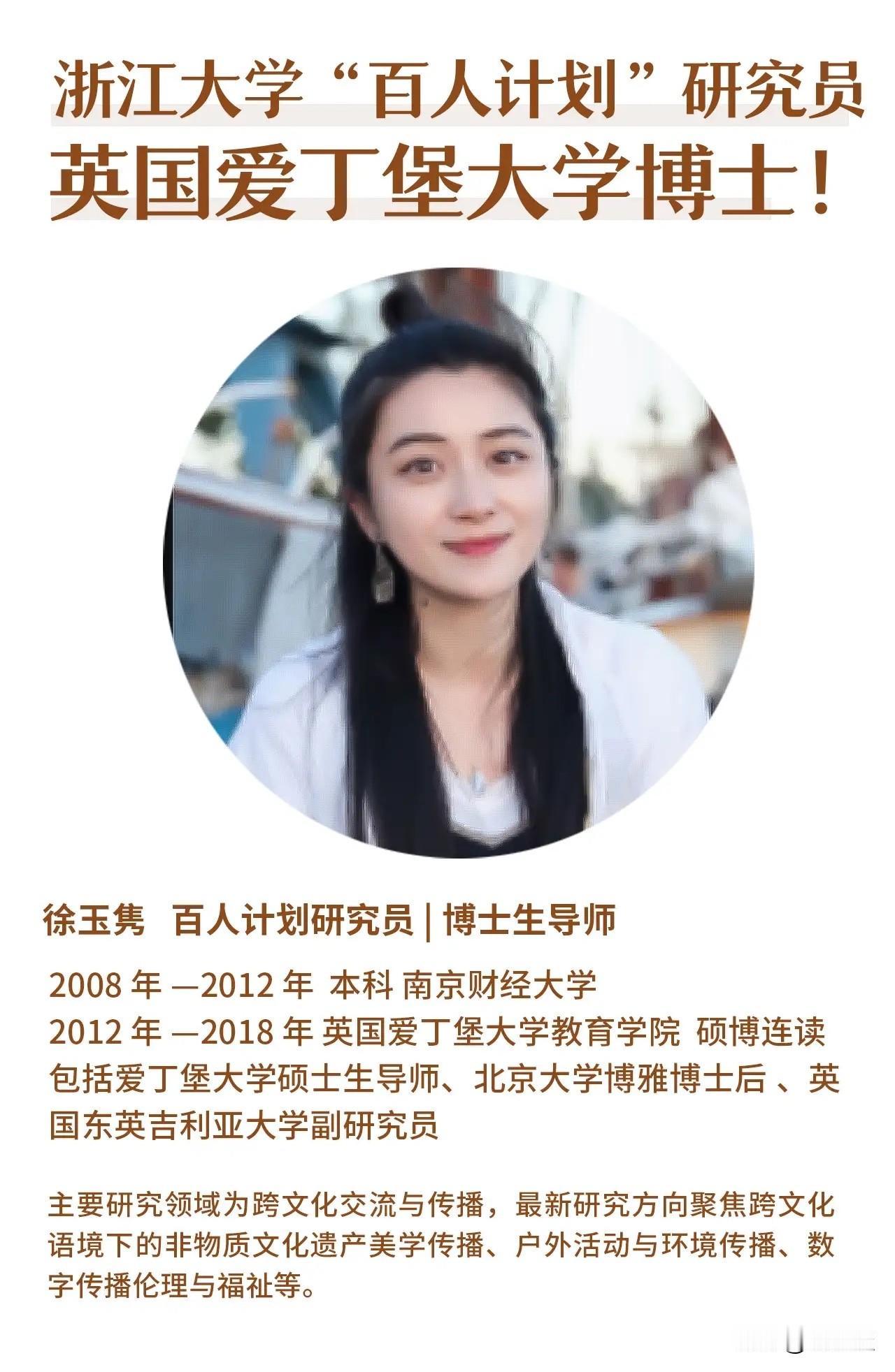 浙江大学最近真的是挖到宝藏了,吸收了不少国外留学归来的高素质人才,最近又添加了一位非常漂亮,是非常有学问的博士生导师,曾经到英国爱丁堡大学留学,并且硕博连读取得了爱丁堡大学的硕士生导师,英国东英吉利亚大学副研究员等一系列称号,学成归来被折大聘为百人计划研究员博士生导师。虽然他的本科很一般甚至连211大学都不是,但是他凭藉自己的努力取得了国外的研究生学位,并且来到北京大学进修,确实非常厉害,浙江大学最近真的是吸引了不少海外留学归来的.给他们提供了就业的好机会,也完善了浙江大学的人才机制