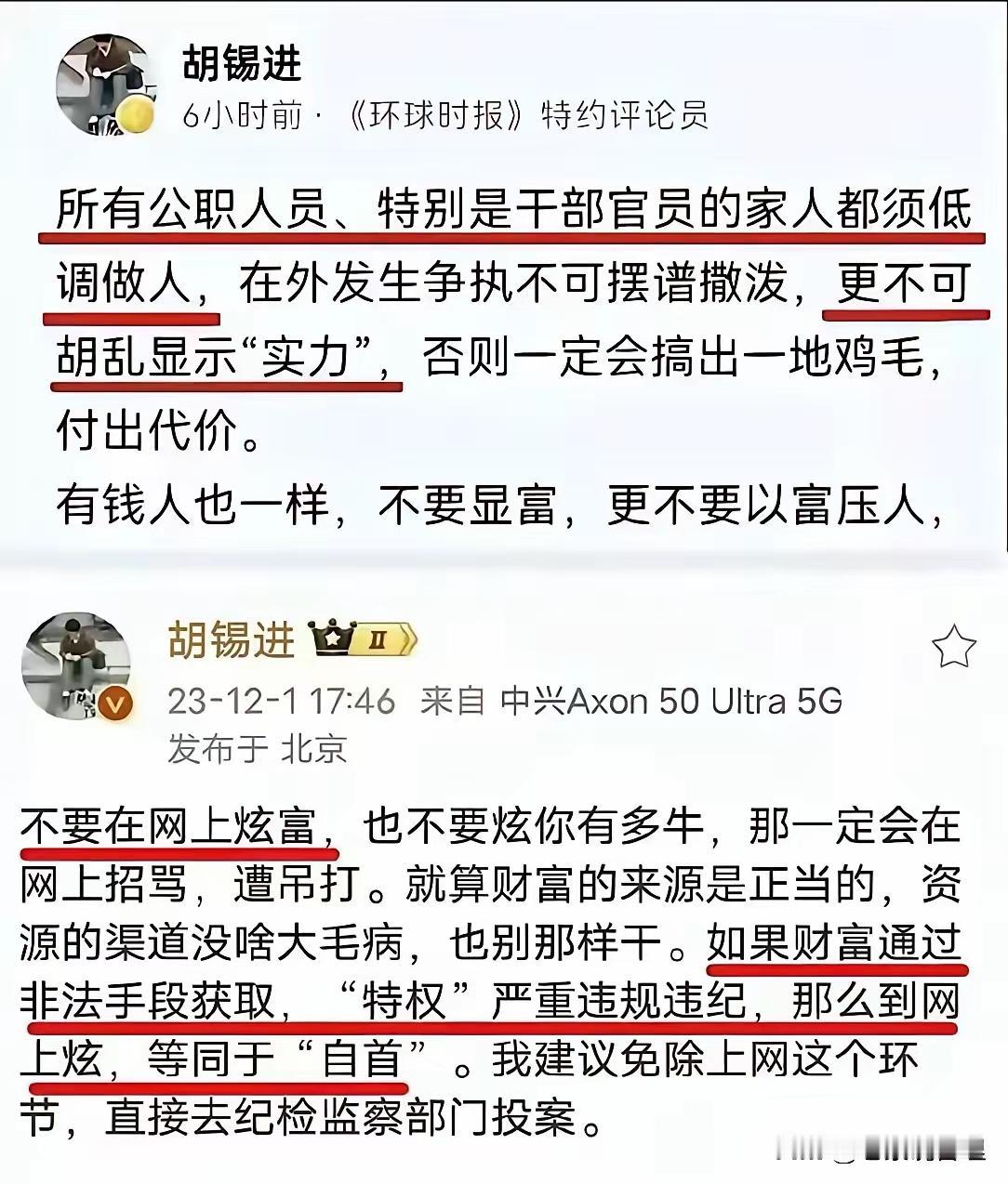老胡这个提醒,纯属多余,立场站错了,我们有干部财产申报制度,也会逐步实行财产公开制度,干部财产没有可以隐瞒的,越公开越好, 应该欢迎大家晒啊晒!