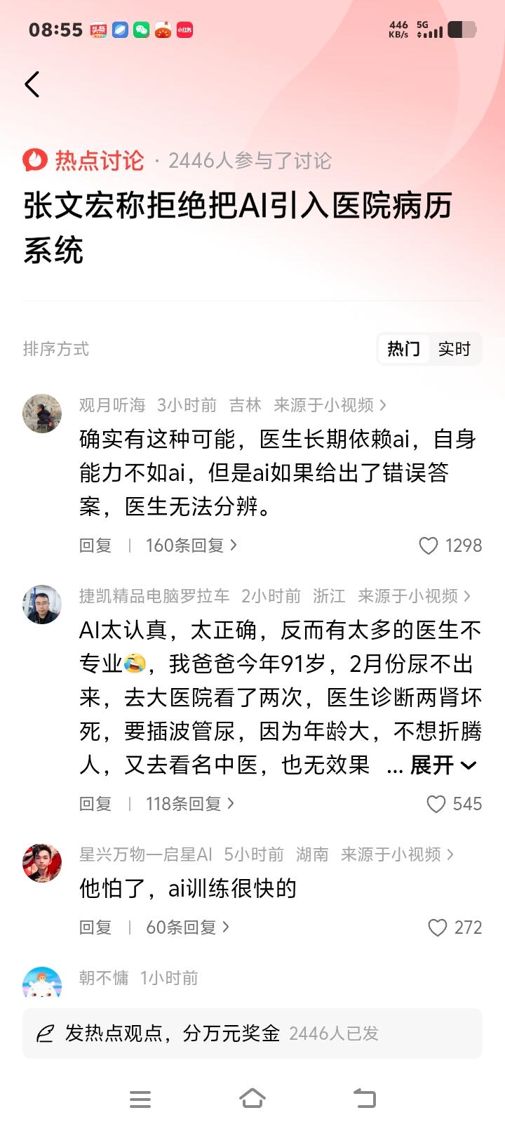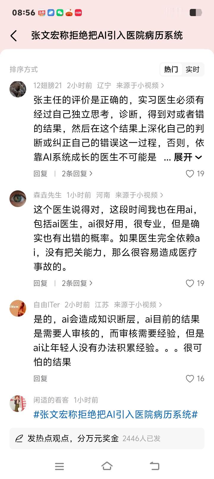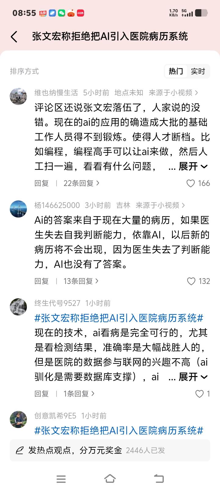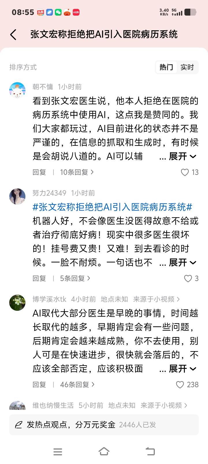 张文宏香港论坛硬核表态:AI再强也休想进我医院病历系统!年轻医生若只会点鼠标,谁来为生命兜底? 当AI诊疗的浪潮席卷全球,无数医院争相引入智能系统时,一位重量级医学专家却站出来,投下了一枚“反对票”。国家传染病医学中心主任张文宏教授在香港高山书院论坛上直言:“我拒绝将AI引入所在医院的病历系统。”这句话,瞬间在医疗界和科技圈炸开了锅。 难道这位曾在疫情中以理性直言著称的专家,竟成了技术进步的“绊脚石”?非也。细究其言论,你会发现,这并非对科技的恐惧,而是一位资深医者对医学本质的深刻守护。他本人也使用AI,但用法截然不同——让AI先看病例,而后凭借数十年临床经验,一眼揪出其中可能的谬误。 他真正担忧的,是那些刚刚穿上白大褂的年轻面孔。如果实习医生、住院医师从入行起,就习惯性地从AI那里直接获取诊断结论,跳过望闻问切、抽丝剥茧的思维训练,那么他们失去的将是什么?是独立判断的能力,是鉴别AI对错的火眼金睛。当技术便利悄然侵蚀专业根基,这才是隐藏最深的风险。 这让我们想起生活中那些似曾相识的场景。当导航软件普及,多少人已记不清城市的主干道?当计算器唾手可得,谁还记得口算心算的流畅?工具在赋能的同时,也在悄悄弱化我们某些本能。医学,这门关乎生命的学科,其核心能力岂能轻易外包?诊断思维,如同医生的“肌肉记忆”,必须经过千锤百炼。 网络上,争议已然沸腾。有人力挺张教授,认为这是对医疗安全的负责,医生不能被算法“驯化”。也有人质疑,认为这是固步自封,AI在影像识别、数据分析上的优势,能极大减少人为失误。更有患者分享亲身经历,感叹部分医生冷漠敷衍,反而期待AI的“一视同仁”。这些声音,共同折射出公众对医疗质量与人文温度的双重期待。 事实上,AI在医疗领域的角色,更应定位为“超级助手”而非“决策主宰”。目前,许多医院在影像辅助诊断、病历信息结构化等方面已引入AI,成效显著。但这与将AI深度嵌入核心诊断流程,有本质区别。张教授反对的,是后者——那种可能让医生思维惰性化、能力空心化的“系统性替代”。 医学不仅是科学,更是人学。AI能分析海量数据,却感知不到患者手心的颤抖、眼神里的焦虑;它能匹配相似病例,却无法理解每个生命故事的独特性。医生的价值,恰恰在于那基于经验与共情做出的、超越现有数据模型的综合判断。这份人性的洞察与温度的守护,是任何算法都无法编码的。 张文宏的这次发声,如同一记清醒的警钟。它敲给医疗管理者:在拥抱技术时,如何设计制度,确保医生的基本功训练不滑坡?它更敲给每一位从业者:在工具日益强大的时代,我们真正不可替代的核心竞争力究竟是什么?或许答案就在于,永远保持独立思考的能力,和那颗对生命永不麻木的敬畏之心。 技术的车轮滚滚向前,无人能挡。但如何驾驭它,而不被其反噬,是人类永恒的课题。在生命健康的领域,这份审慎尤为珍贵。我们需要的,从来不是人与AI的对立,而是让技术成为延伸我们能力、而非取代我们思考的翅膀。只有这样,医疗的未来,才能既拥有科技的精准高效,也不失人性的光芒与温暖。 AI医疗边界 医生核心竞争力 医疗人文温度 (来源:综合自界面新闻、看看新闻、快科技、小红书等平台热议及张文宏教授在香港高山书院十周年论坛发言)