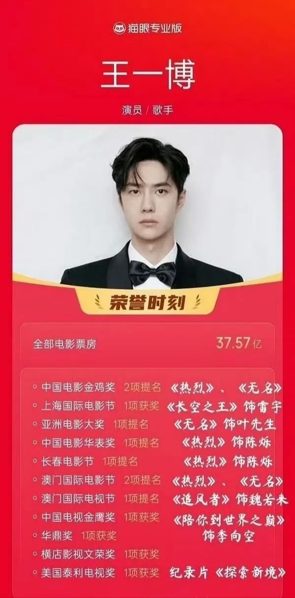 主旋律、正能量、票房高、口碑好——王一博的作品少不了[赞]。 江西省电影发行放映协会等机构决定于2026年元旦、春节期间在全省开展公益电影放映活动。活动精选一批【主旋律】、【正能量】、【票房高】、【口碑好】的优秀影片。 王一博主演的《长空之王》又双叒叕在名单里啦! 王一博严选,部部精品,这句话的含金量经得起时间的考验。 王一博 王一博长空之王