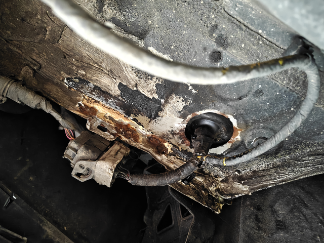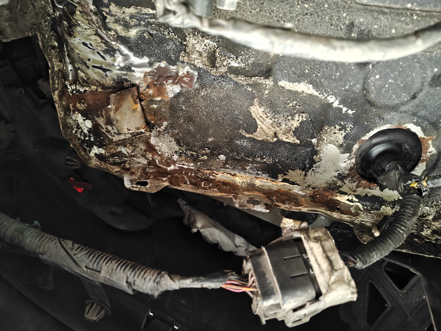 这就是比亚迪4儿子店的修车手法 车之前被追尾了,保险拉单深圳某儿子店,近期在外汽修厂四轮换位,举升机抬起来发现有锈点,一铲开胶全锈了,机修师傅看的都说底盘涉水区这些手艺就是坏等二次创收,整形完不把裂满焊封住露铁的也不上环氧底漆封闭,直接就一把钣金胶糊,收的最贵的工费材料还这样搞,真就是只会切割换件?还是为了质保这还得消费者自己受着