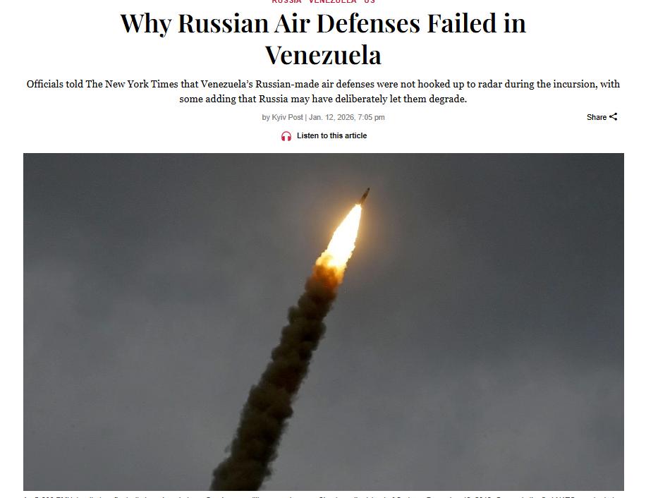 据两名前美国官员接受《纽约时报》采访称,俄罗斯可能出于外交原因,默许其出售给委内瑞拉的武器系统在美军干预前逐渐恶化,而这些备受吹捧的防御措施未能阻止美国的行动。四位现任和前任美国官员告诉该媒体,委内瑞拉军队缺乏正常作和维持俄制S-300和Buk防空系统的能力,导致五角大楼执行“绝对决心行动”时,这个国家暴露在危险之中。官员和专家表示,俄罗斯也负有责任,因为俄罗斯教官和技术人员通常应当确保系统正常运行并协助保持运行。