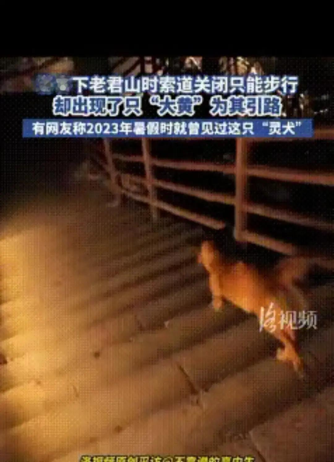 老君山那条大黄狗又立功了。 一个哥们贪看日落错过索道,手机没信号,腿软得走不动,眼看要被困山上。 六点半天擦黑,狗子突然从石头后冒出来,绕着他转两圈,掉头往下山道走两步又回头,意思很明白:跟我走。 俩小时夜路,狗在前,人在后,手电筒没电就借月光,硬是把他领到停车场。 下山后哥们拿火腿肠谢它,狗子吃完抬爪子搭他手,像握手又像说拜拜。 视频一出,全网都在刷这条“灵犬” 动物比人更懂善意,它没工资没编制,却一次次把迷路的游客带回家。