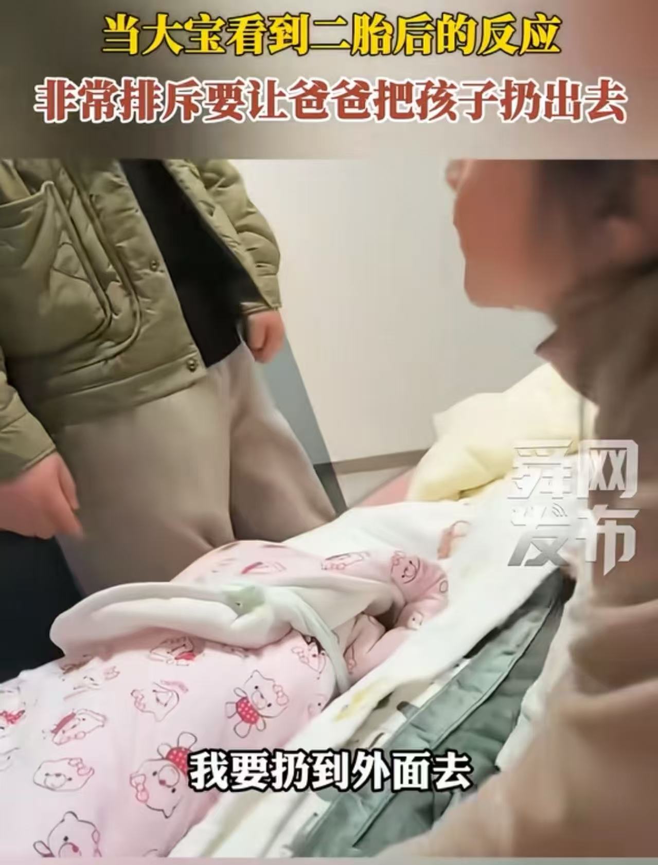 男子和妻子生了二胎儿子,本以为女儿多了个弟弟会开心,没想到她的反应让全家措手不及——非要爸爸把孩子扔出去!网友:生二胎之前一定要跟大宝做好沟通,她觉得自己的爱会被抢走,所以才会排斥!