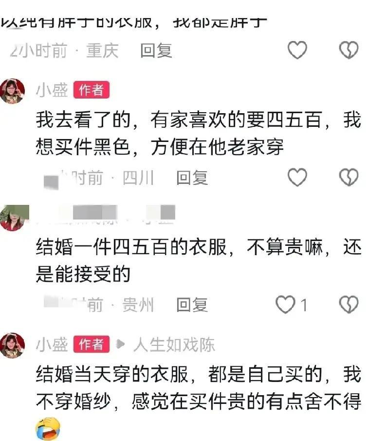 王平小盛这对情侣博主在婚礼前两周因为一条裙子吵上热搜。 女方看中139块的白色连衣裙,觉得简单干净就行。 男方当场黑脸,说像睡衣不够体面,转头拉她去试899的定制礼服。 小盛嫌贵又不实用,回家就把试衣间争执剪成视频发出去,配文“我想穿一百多的裙子结婚,他觉得丢人”视频一夜爆火,点赞冲到280万,评论区吵翻天。 有人站小盛:婚礼不是走秀,舒服最重要。 也有人挺王平:一辈子一次,穿好点不过分。 我看这事根本不是钱的事,是俩人压根没聊明白婚礼到底要啥样。 一个想轻松,一个要面子,消费观差这么大,婚后有的吵。 婚礼不是秀场,是两个人的日子。 穿多少钱的裙子不重要,重要的是俩人能不能把话说开。