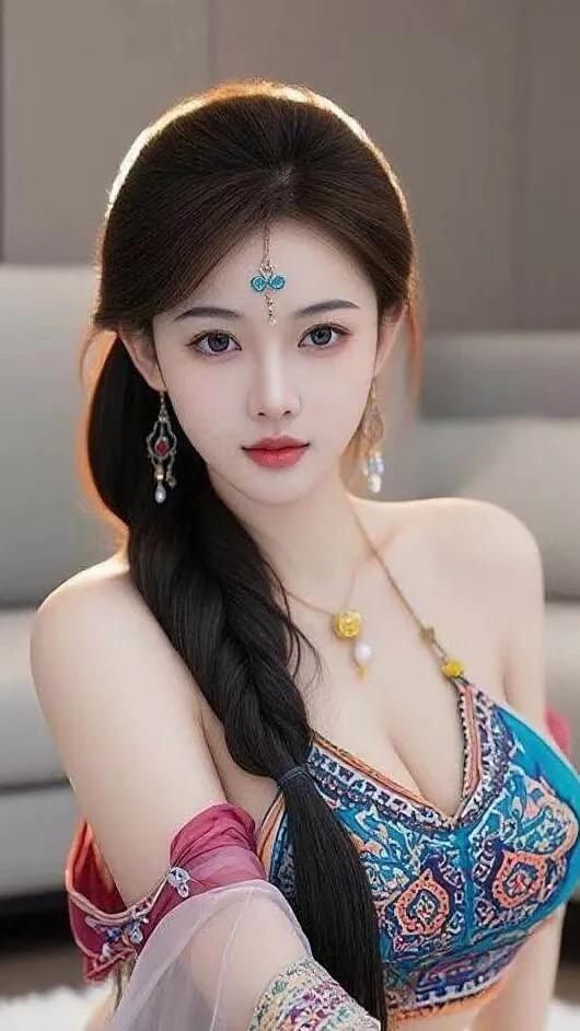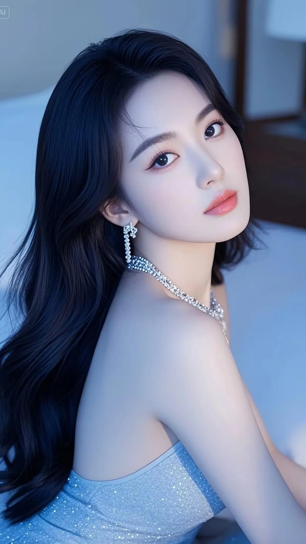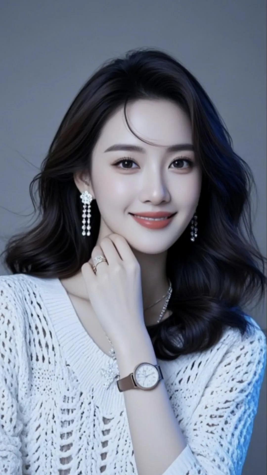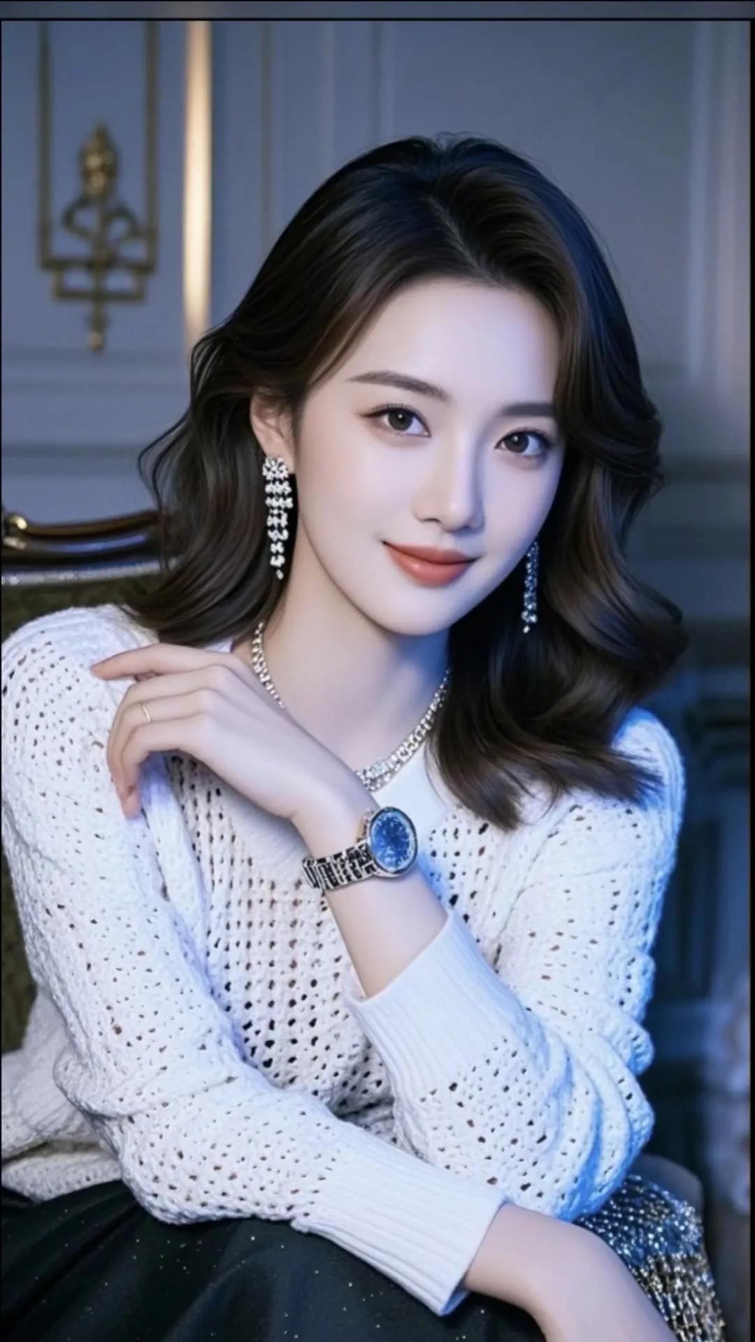 温柔甜美的少女,彩色毛衣搭配闪亮项链,梦幻般的感觉
