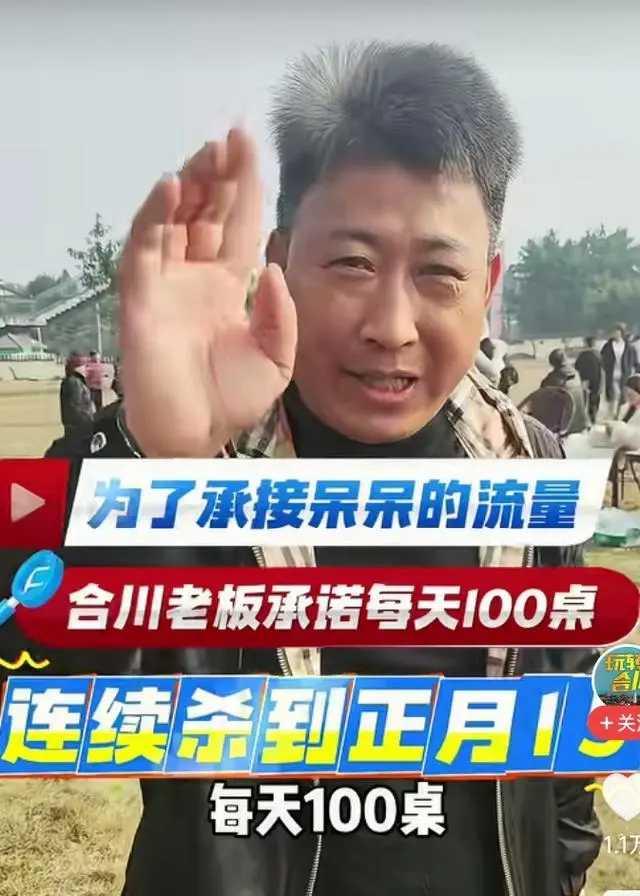 呆呆的父母老了,怕按不动猪脚,一声召唤,加入按猪脚的网友父四面八方赶来。 每天人数己升至万余人次以上。 一场自发的大型聚会,也得到了当地政府部门的敏捷响应。 当地老板也豪爽的加入了这次2026年的第一闯祸精呆呆发起的全民狂欢活动。承诺每天五头猪,免费100桌,一直杀到正月十五。 合川的人是兴高采烈了,合川的猪瑟瑟发抖了。