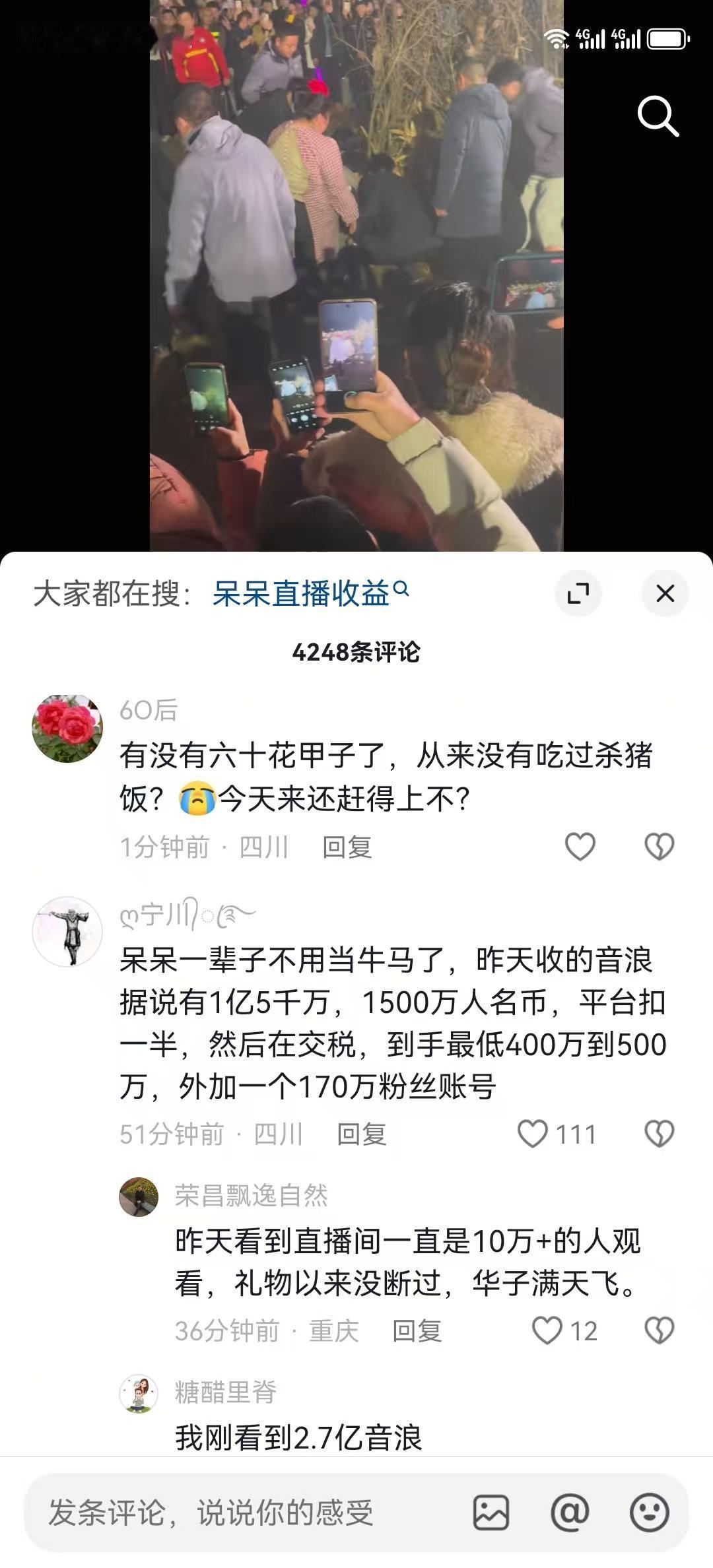 呆呆这“祸”闯的好,闯的妙,闯出了泼天富贵啊! 有网友计算了呆呆这几天的直播收入超千万,这是我们普通人一辈子都不敢想象的收入啊! 23岁的呆呆就轻而易举地实现了,但是呆呆的成功是有迹可循的。 1、是她很孝心,看到父亲年纪大了,担心父亲年纪大了,按不动猪。 2、她真诚,即使后面来的人多了,她没有不理人家,而是找人帮忙,即使家里两头猪吃完了,也要好好招待来的人。 3、她懂的感恩,在杀猪宴办成功后,她一直在感谢帮助她的人。
