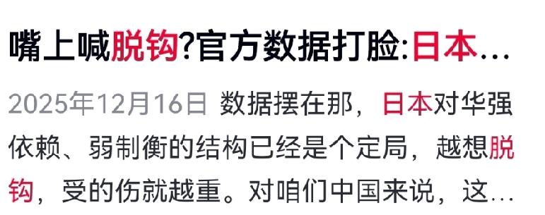 日本高喊对华“脱钩”,实为一场“产业寄生”戏码。声称要另寻伙伴,不过想找更便宜的“接盘侠”来承接旧成本。 但现实是:没有第二个中国。从原材料、超大规模市场到高效制造网络,南半球哪个国家能接住? 印尼基建不足,澳洲工业断层,巴西供应链都难畅通。 行动暴露真相:日本一边喊“自立”,一边增购中国半导体配件、囤积中间产品。佳能、索尼、丰田等日企持续在华布局,资本的选择不会骗人——效率至上,其他地区根本无力承接高端制造需求。 日本增购中国半导体配件和囤积中间产品的行为进一步说明,其“自立”策略缺乏现实基础。全球制造的底板依然在中国,任何试图转移高端制造的努力都因效率问题而难以成功。 所以,这场“自立秀”只是战术遮羞布,安抚国内、试探对手罢了。全球制造的底板,依然在中国是发展客观规律性。 对此你怎么看?