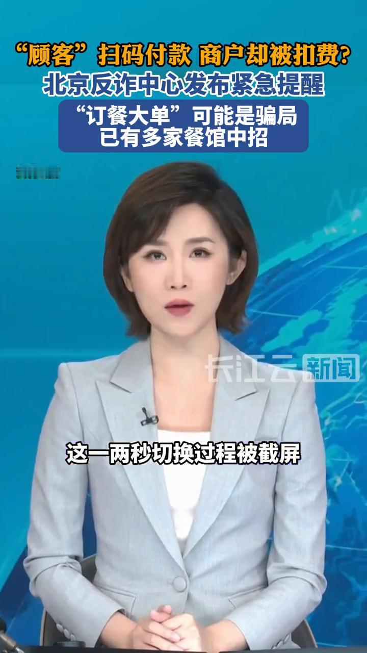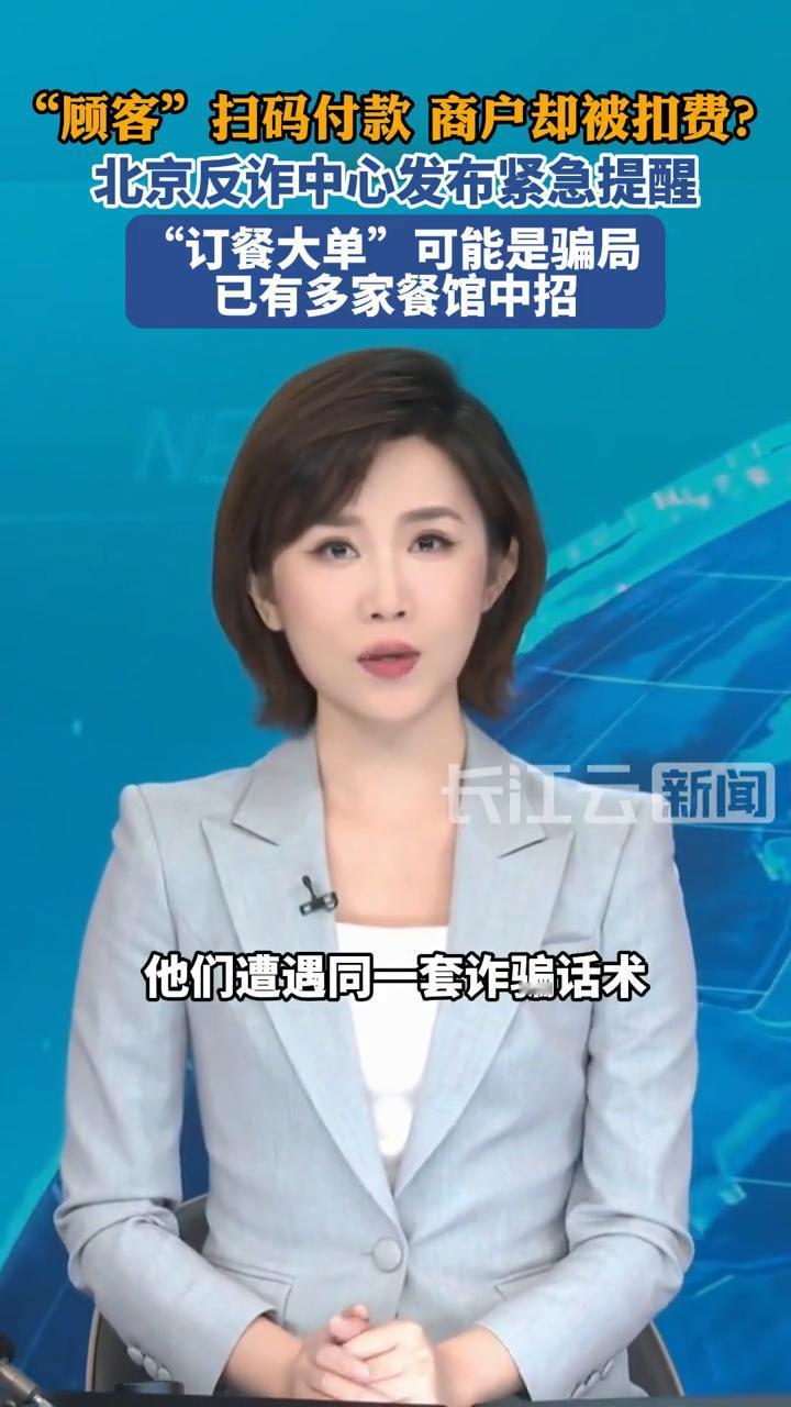 "顾客"扫码付款商户却被扣费?北京反诈中心发布紧急提醒:"订餐大单"可能是骗局,已有多家餐馆中招。 新型骗局曝光,已有多人中招。据中国之声报道,从1月8日中午开始,北京市反诈中心接到多个报警电话,报警人全是饭馆的老板或收银员。他们遭遇同一套诈骗话术,有大客户要预定几桌高标准的酒席,且出手阔绰,承诺说消费3000元甚至5000元以上,还主动提出要先付定金。 但在这时会说网上挂的收款二维码有问题,限额了转不进去,让提供个人收款码。添加饭店工作人员微信后,使用视频通话拍摄收款码。原来打开"收付款"界面时,系统默认先显示付款码,视频中这一两秒切换过程被截屏,付款码就泄露了。骗子专门利用了小额"免密支付"的规则进行盗刷,目前已有十几家商户受损,金额1000到3000元不等。 警方提醒:大家不要在视频中共享二维码,最好设置支付安全锁或打开付款隐私保护功能,让诈骗分子无机可乘。网络扫码诈骗 扫码诈骗 网络扫码诈骗 扫码诈骗 陌生二维码骗局 扫码支付陷阱 订餐陷阱