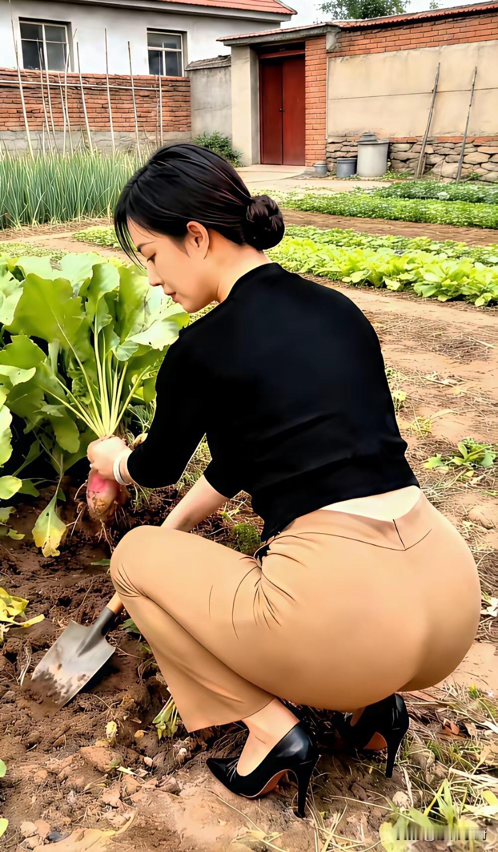 都市丽人下田挖红薯,时尚与自然的完美结合!