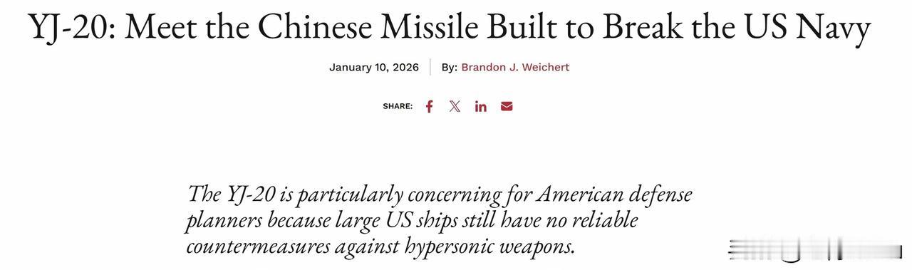 美媒称鹰击-20能摧毁美国海 军:美军缺防御手段 美国计划让弗吉尼亚级Block V型核潜艇搭载CPS高超导弹,首艘2028年入役,初始作战能力或 2030年前后;2032年前美国海军 能发射CPS的单元共48-72个, CPS设计优先陆基目标,反舰有 效性不明。中国鹰击-20是舰载高 超反舰导弹,从055驱逐舰发 射,速度超5马赫,美军缺乏防御手段,2032年前美国搭载数量不如055一艘。
