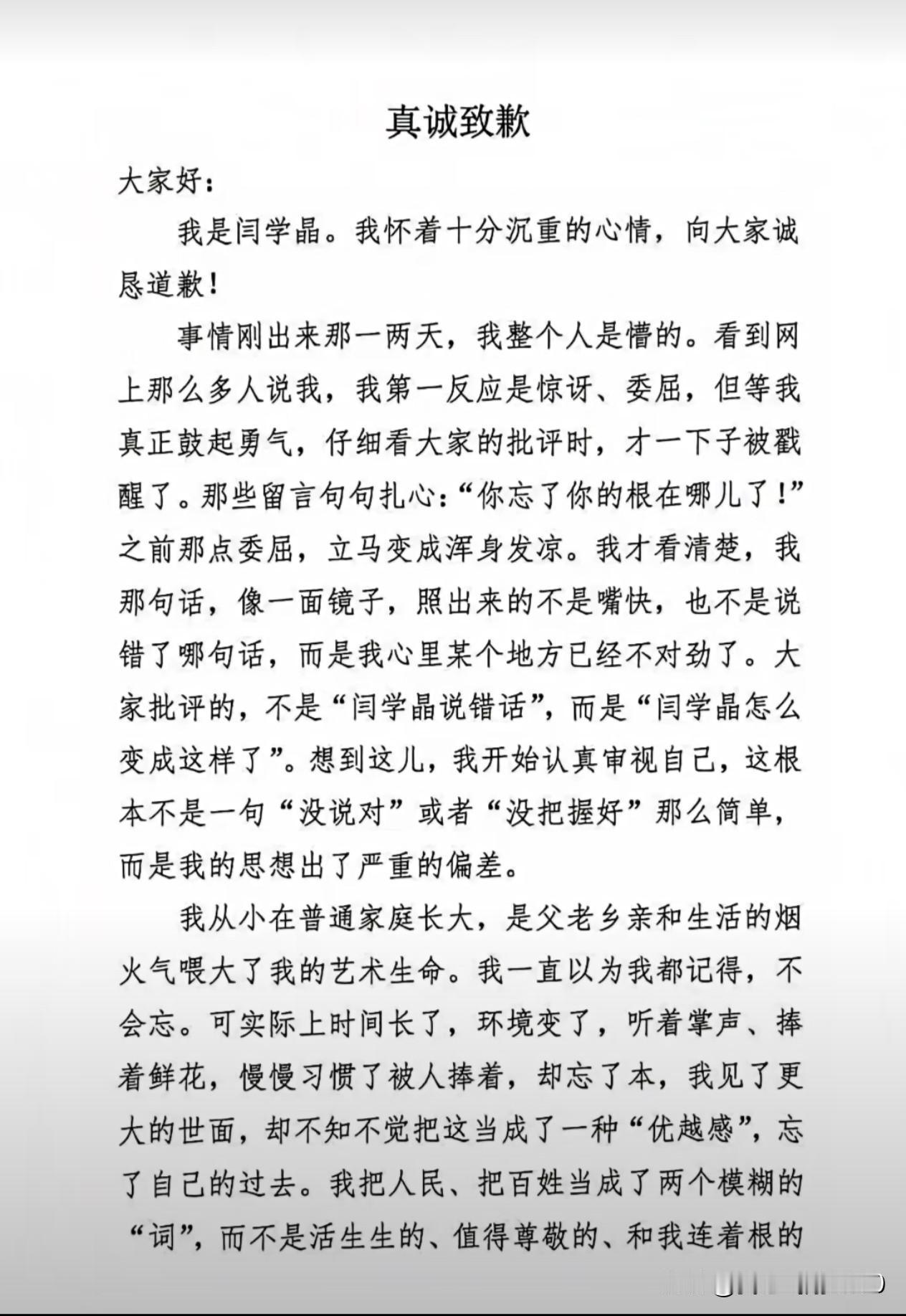 强烈建议全媒体封杀闫学晶!!!她太狂妄自大了,本来是农民出身顶着东北高粱花走出来的艺人,没有赵本山刘老根大舞台怎么会有你走红的今天,走红了竟然忘本公然把生活在社会底层的老百姓统一给了一个名字“酸黄瓜”,没有我们这些酸黄瓜的抬举你又算哪根葱,2026央视春晚节目单上没有你的名字了,产品代言合同跟你解除了,自媒体平台把你屏蔽了,你这才来了一篇“道歉”,看这篇道歉书也不是出自你之手,是你那个三天不吃燕窝就不爽的儿子代写的吧,你这个儿子北京户口怎么弄的新疆报考资格,一个好好的“山杏”让你几句话就给彻底砸锅了。我们酸黄瓜强烈呼吁国家所有媒体、平台彻底封杀闫学晶,酸黄瓜朋友们,你赞同吗?