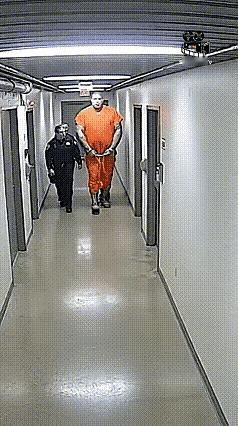 带着脚镣,估计罪行严重了。