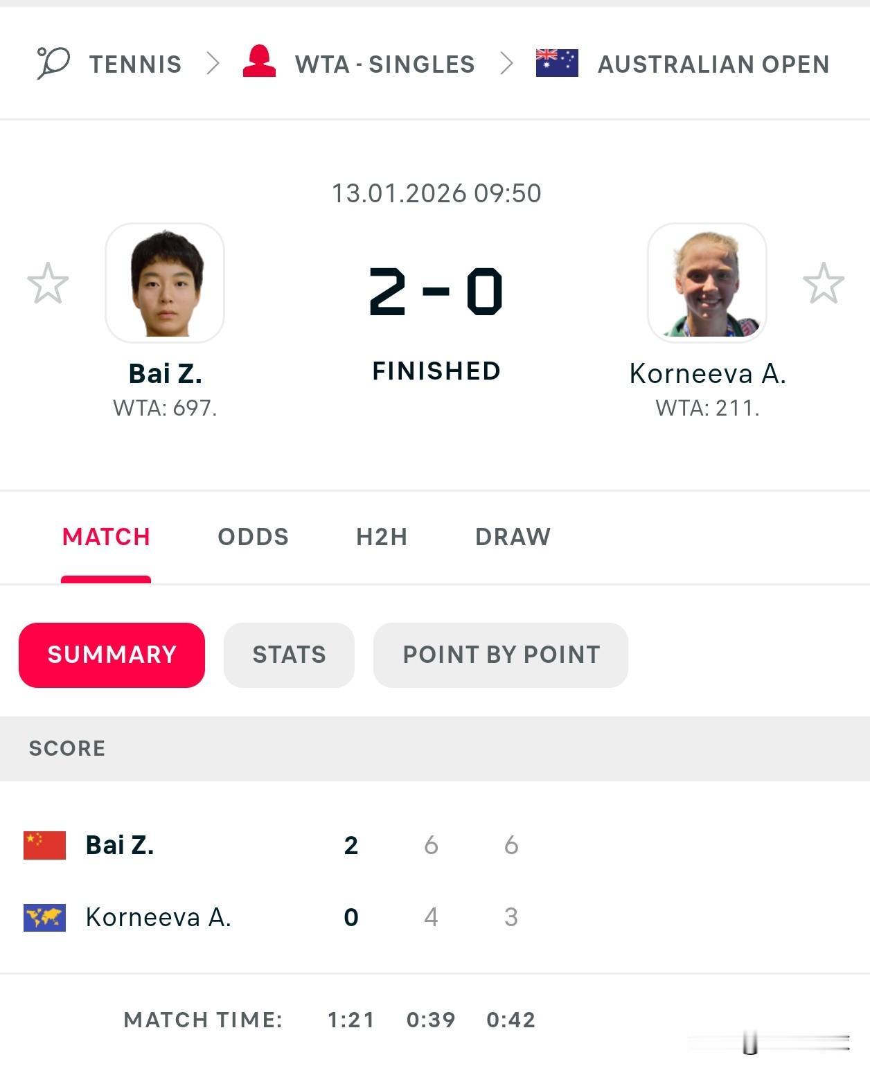 澳网资格赛 🇨🇳白卓璇64,63科尔涅耶娃🇷🇺 🇨🇳吴易昺75,64克鲁格🇺🇸 🇭🇰黄泽林63,76贝纳切特🇫🇷 早些马烨欣也轻松晋级, 中国球员上午4胜一负。 成绩喜人。 [烟花][烟花][赞][赞] 2026澳网