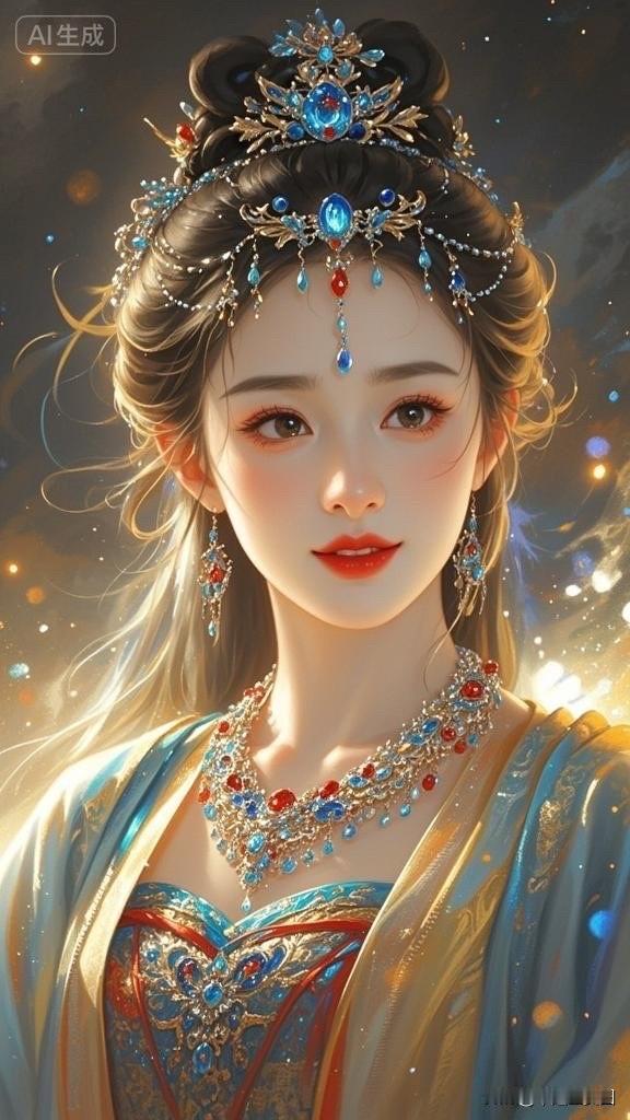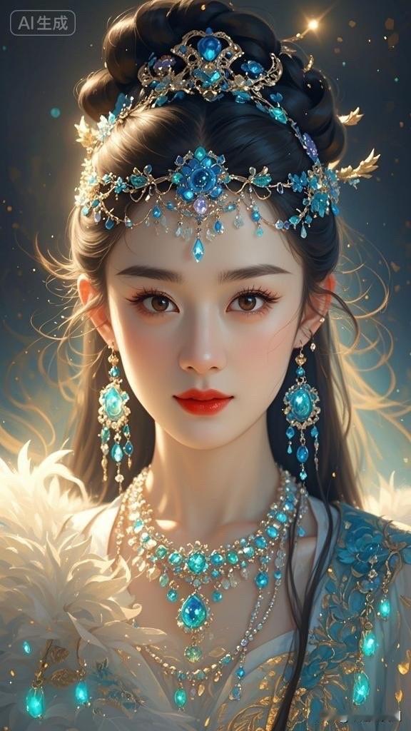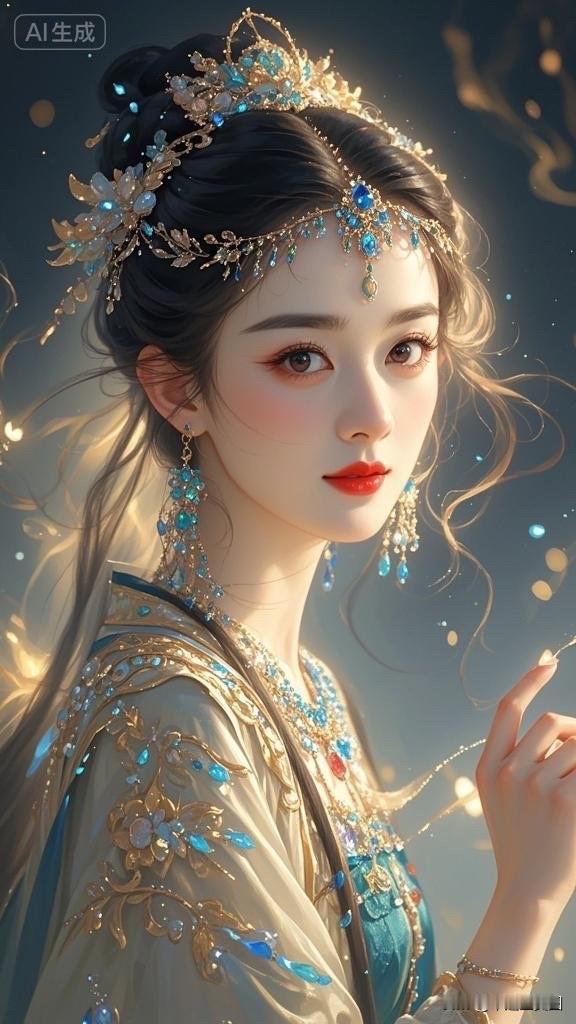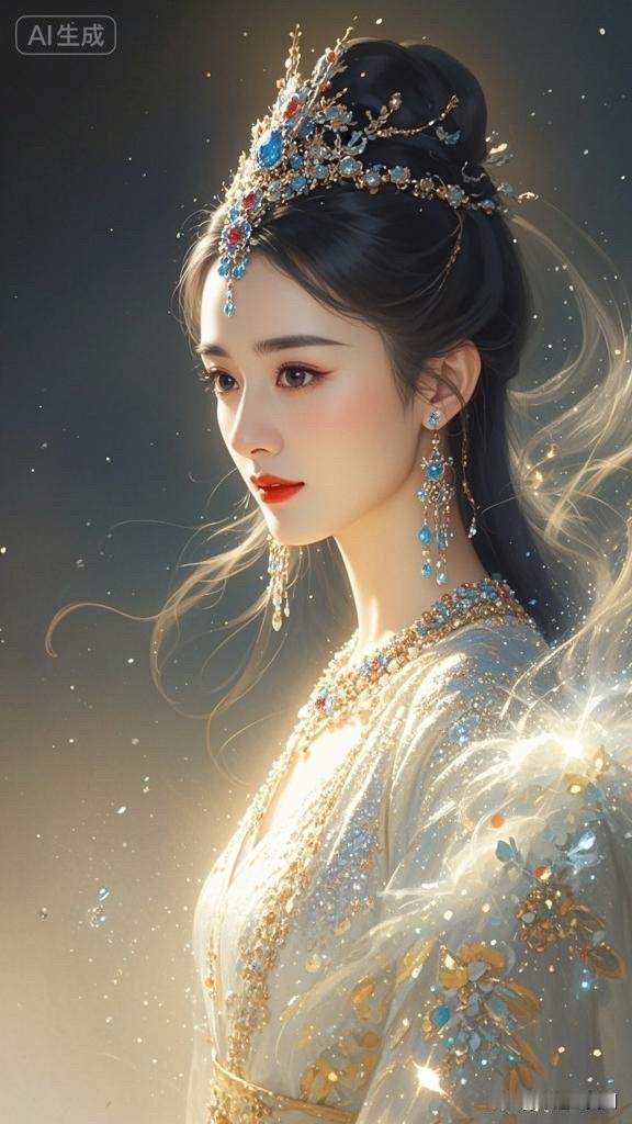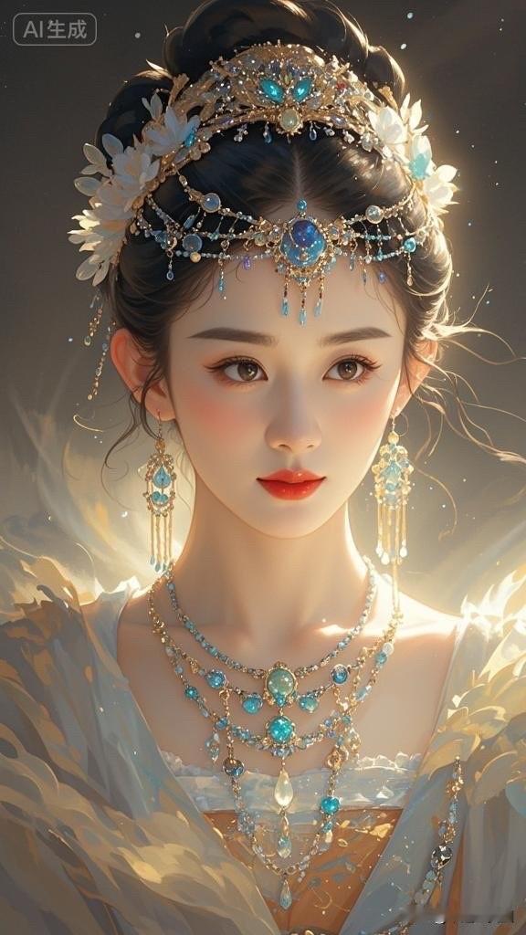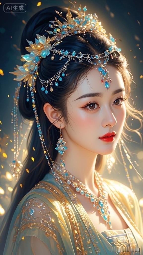 梦幻古风少女,金碧辉煌的华丽头饰,宛如仙子降临。