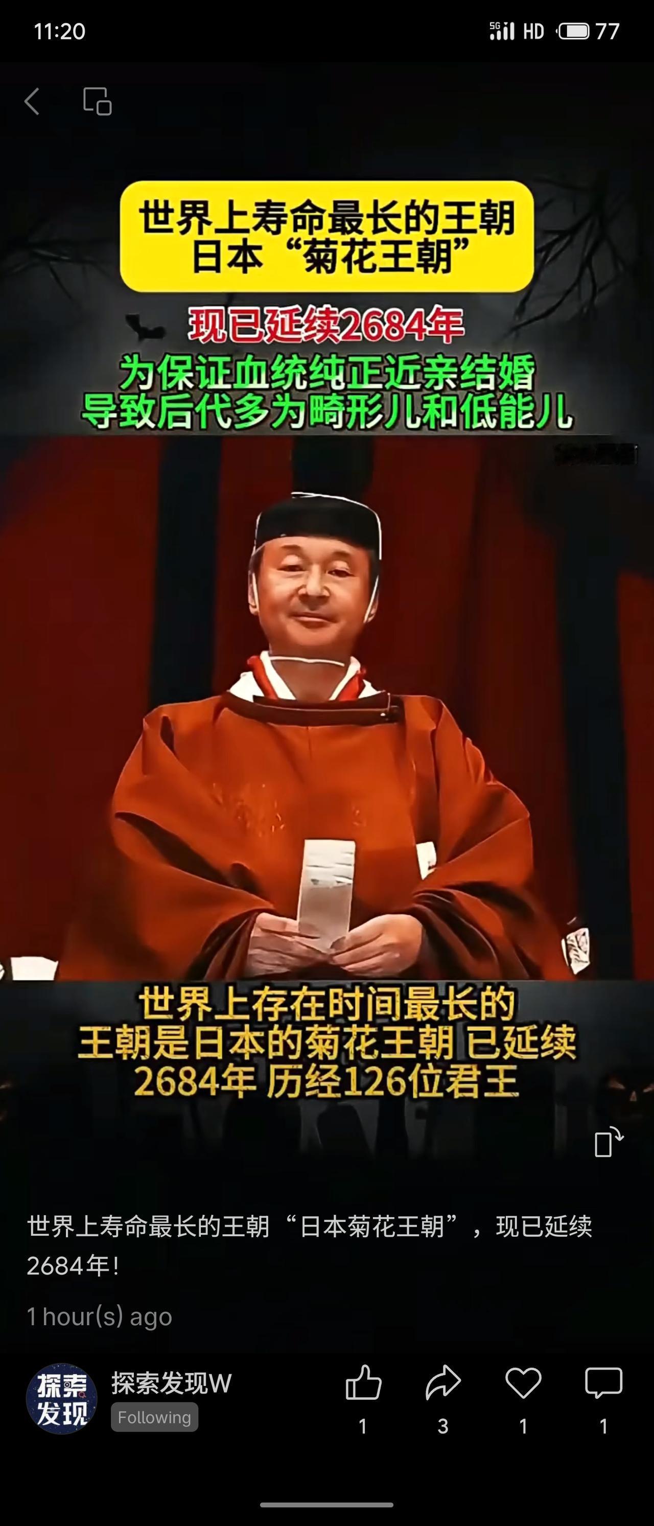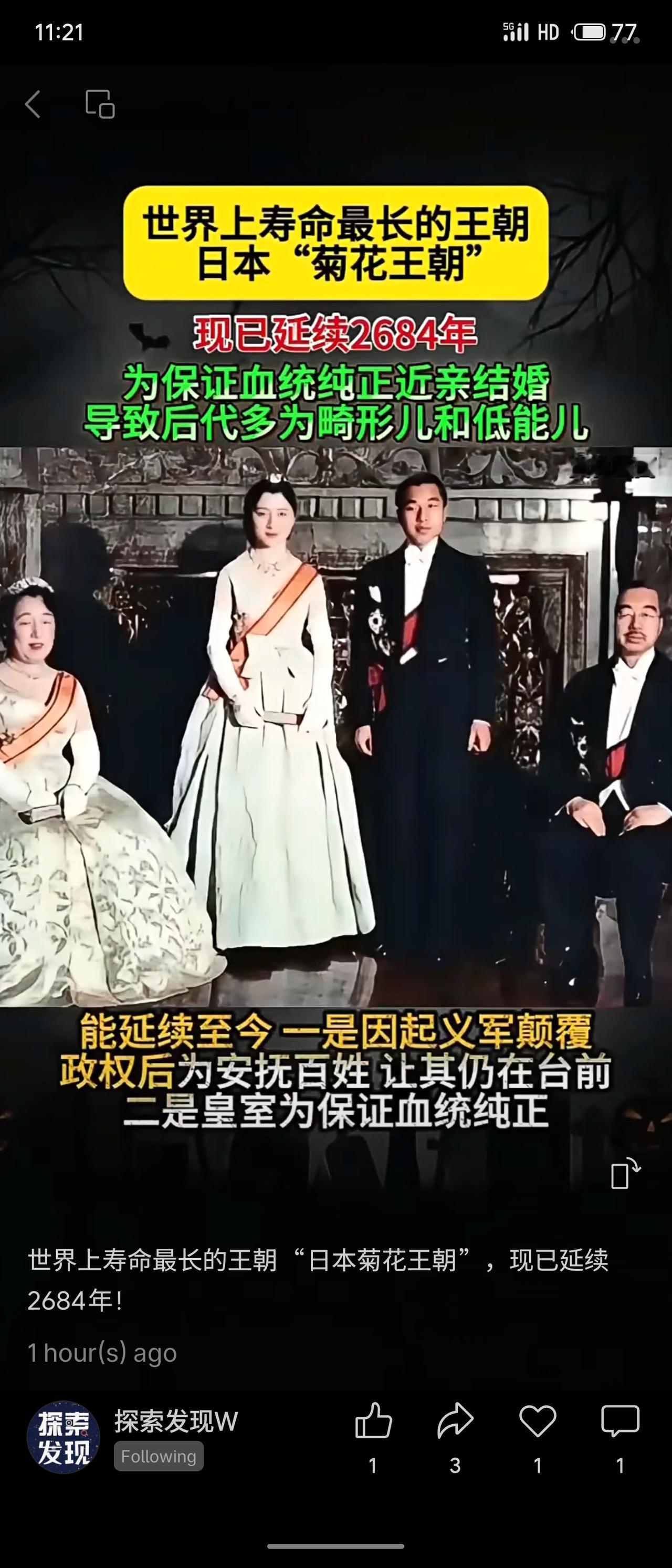 日本菊花王朝被称为世界上延续时间最长的王朝,据称已存在2684年。其延续原因包括政权更迭后仍被保留以安抚民心,以及皇室为维持血统纯正而长期实行近亲通婚,但这也导致后代健康问题频发。